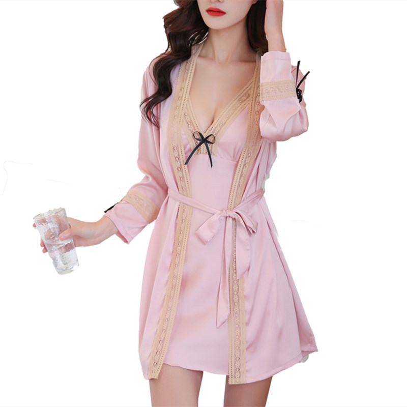 بيجامة جديدة من الحرير الجليدي لعام 2021 مع تنورة بحمالات وثوب نوم بأكمام طويلة للسيدات