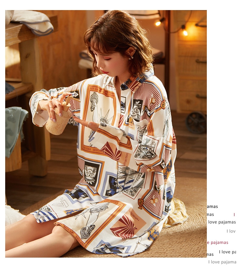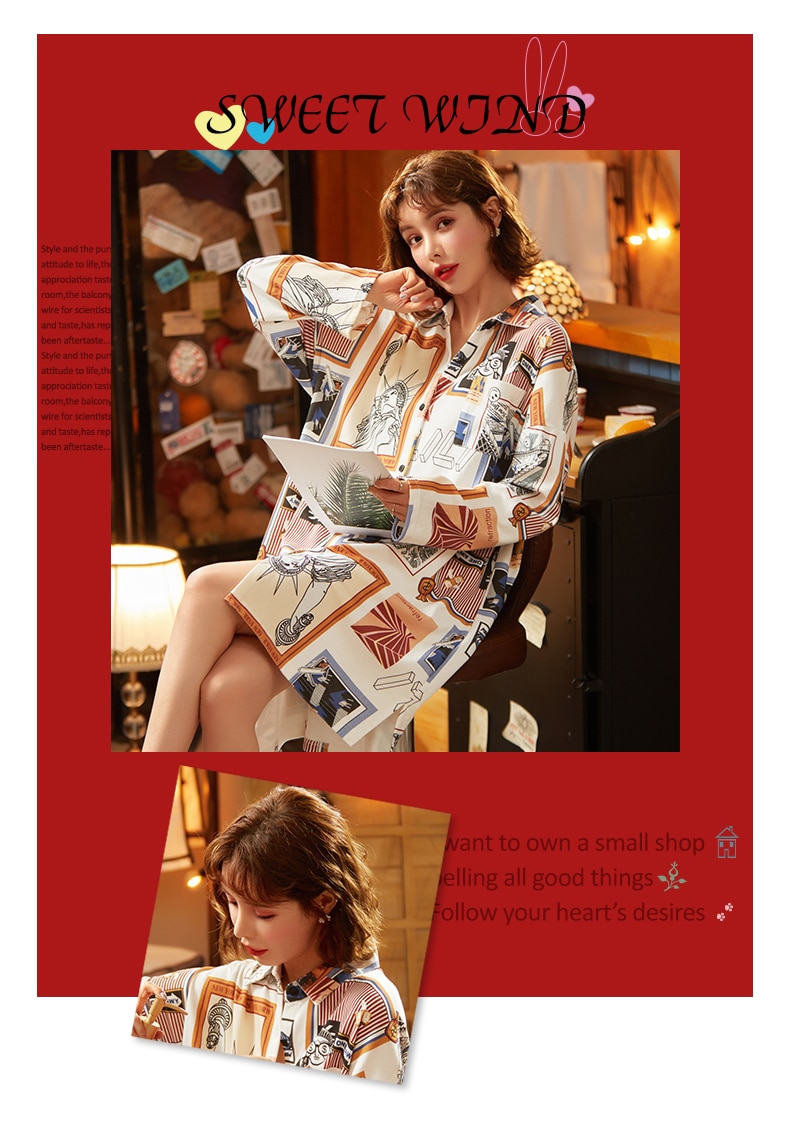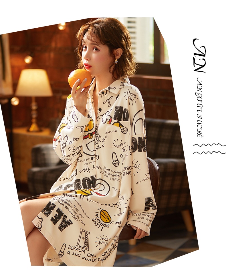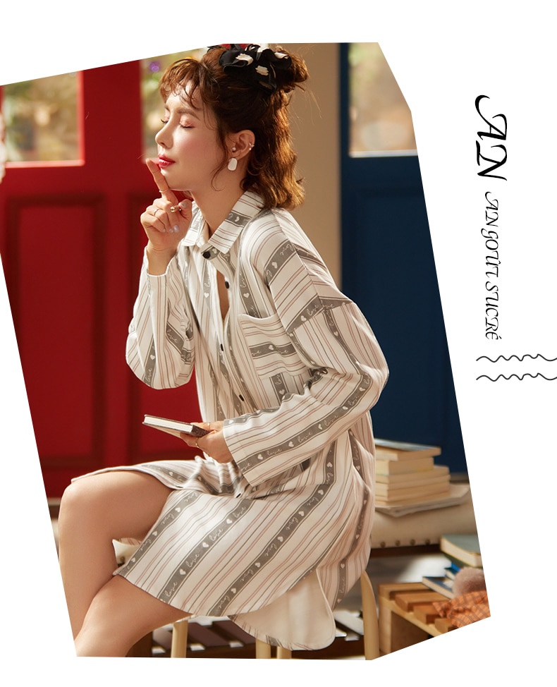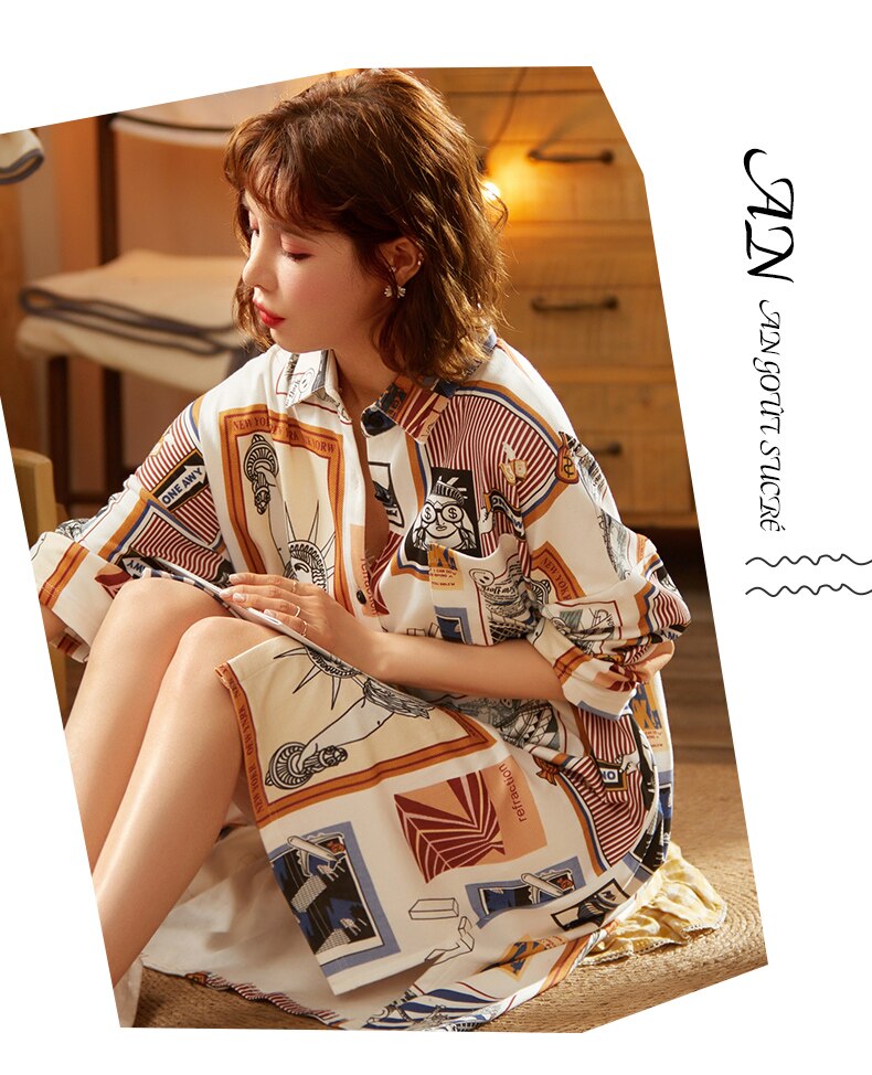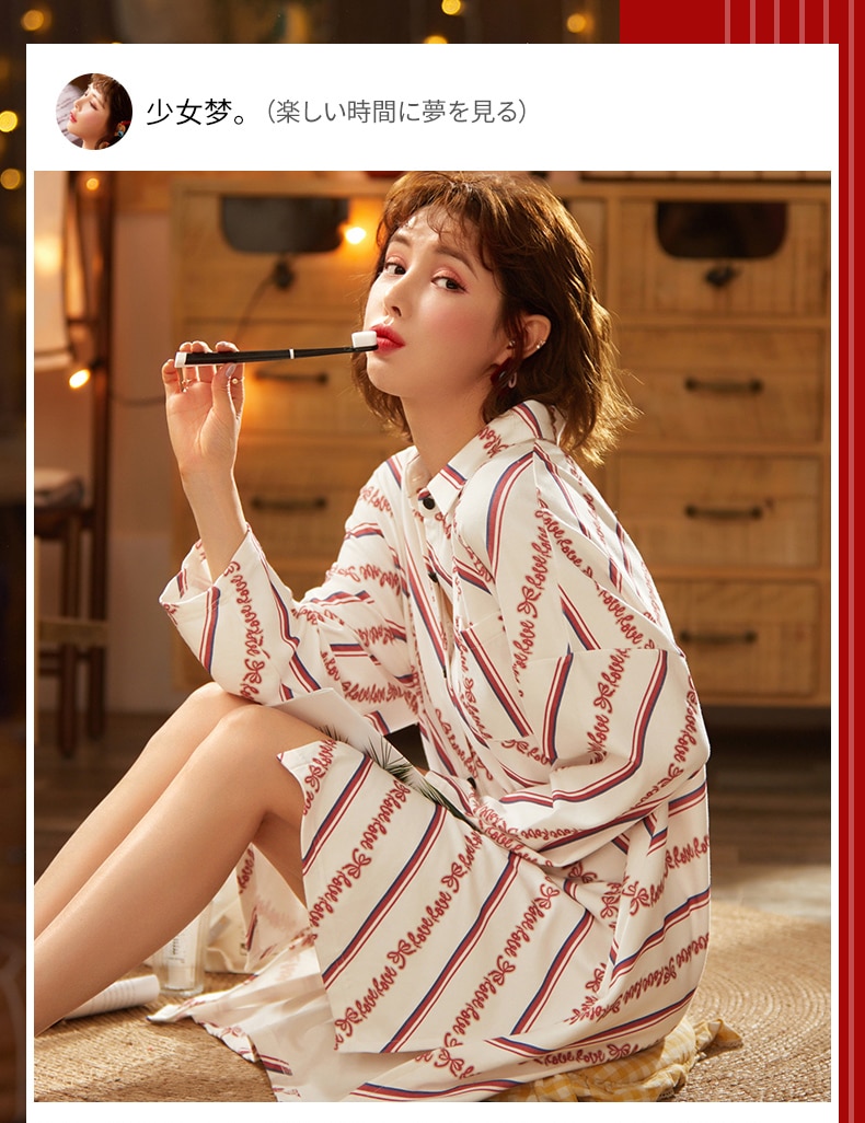 2021 شريط المرأة الترفيه ثوب النوم بدوره إلى أسفل طوق البشكير Witer أكمام طويلة للسيدات قميص تنورة فتاة فستان النوم