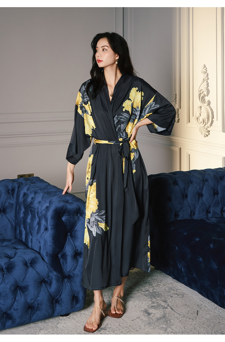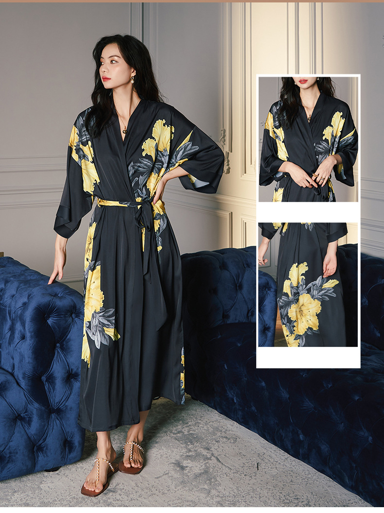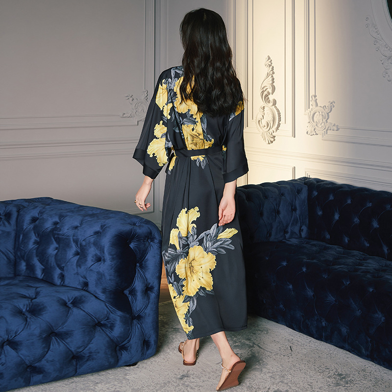 بيجامة من الحرير الجليدي لعام 2022 ثوب نوم نسائي للربيع والخريف ملابس منزلية من الشيفون والساتان الزهري يمكن ارتداؤها في الخارج