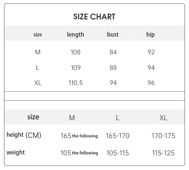 | حجم المنتج | التمثال/الصدر (سم) | طول التنورة (سم) |