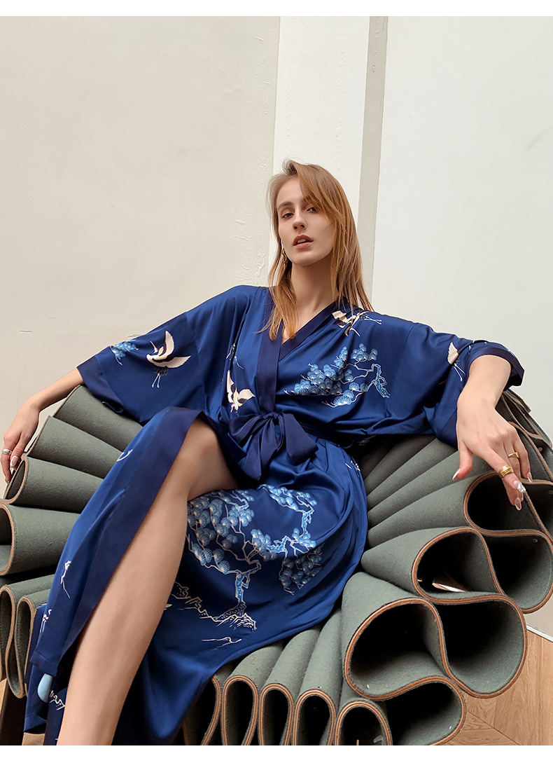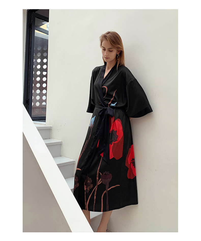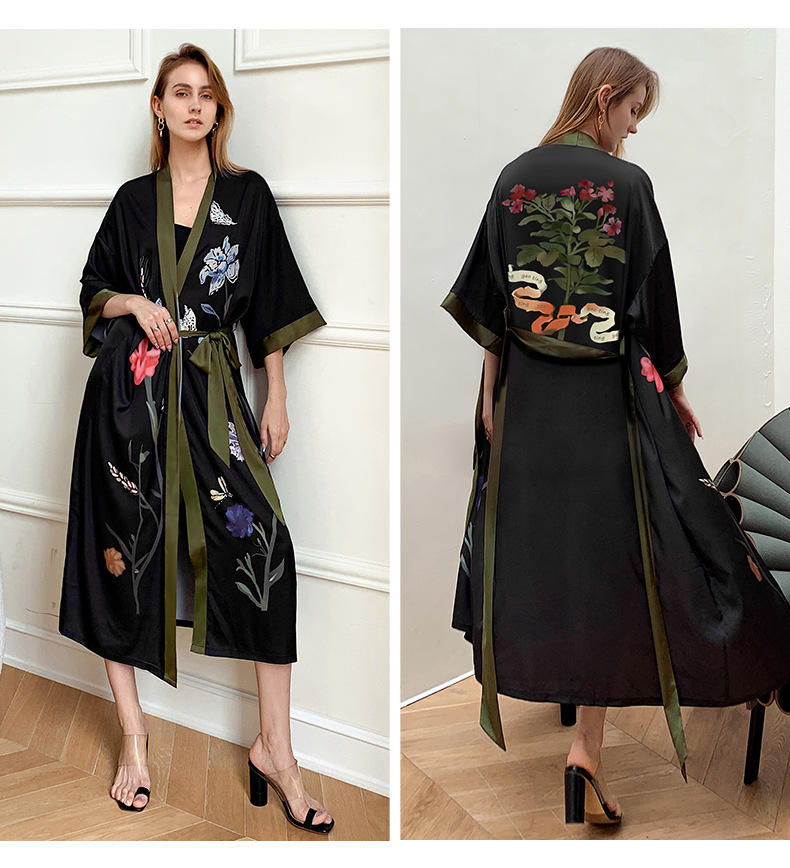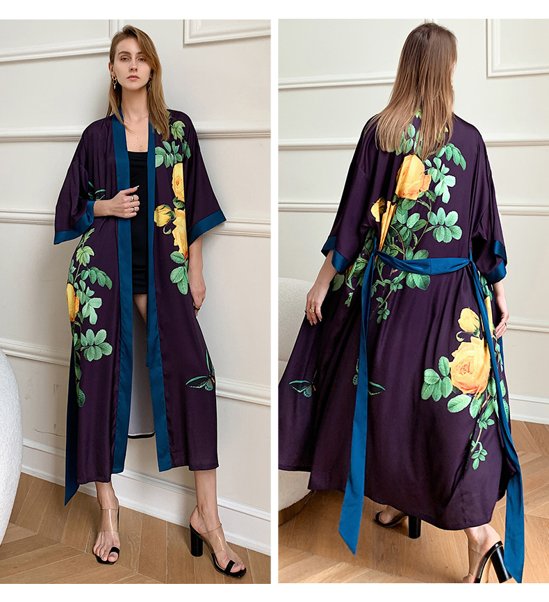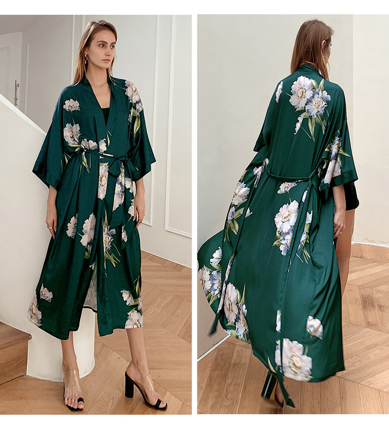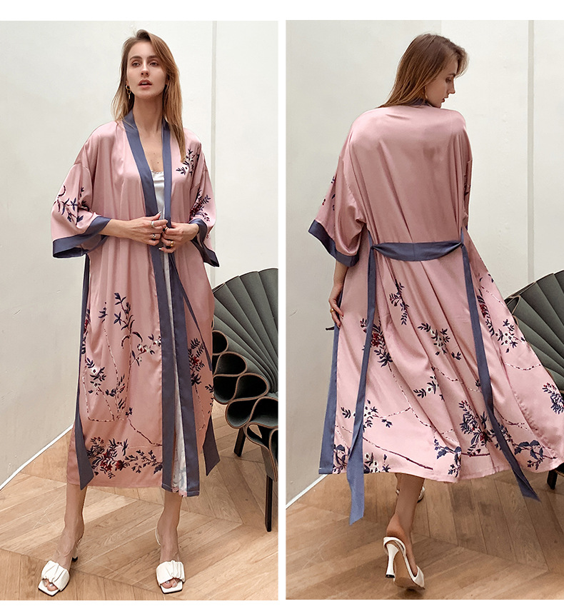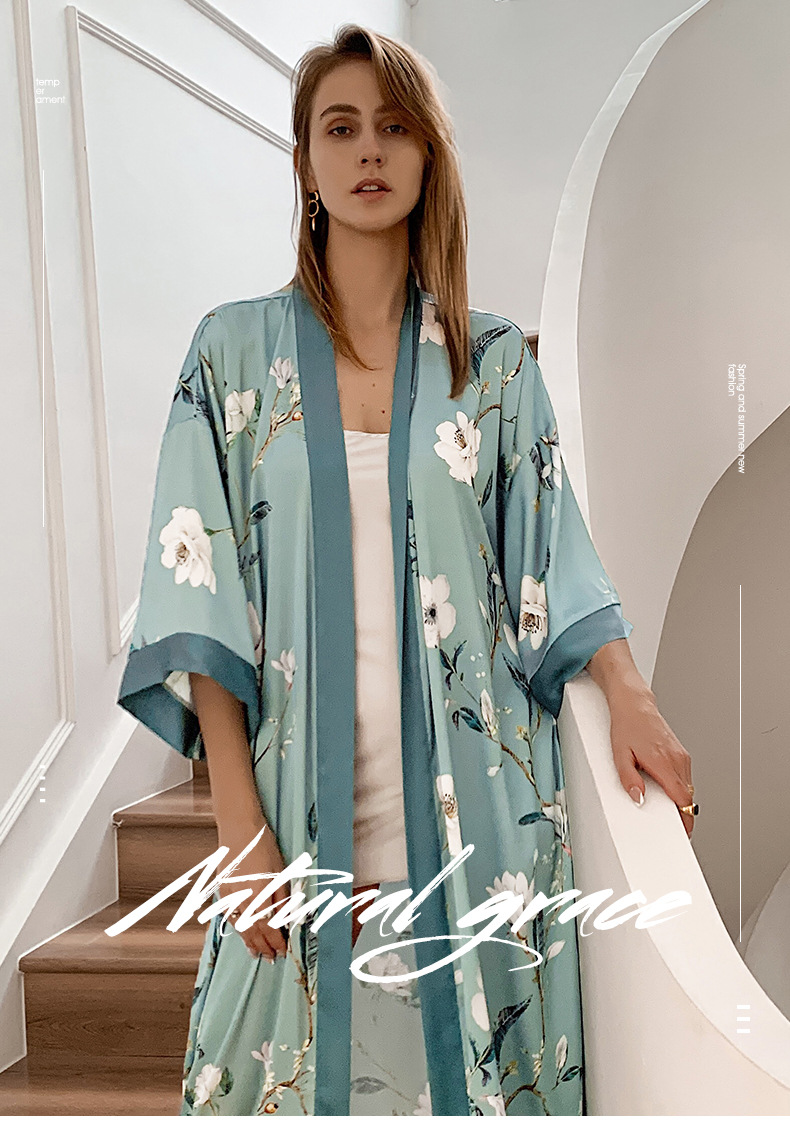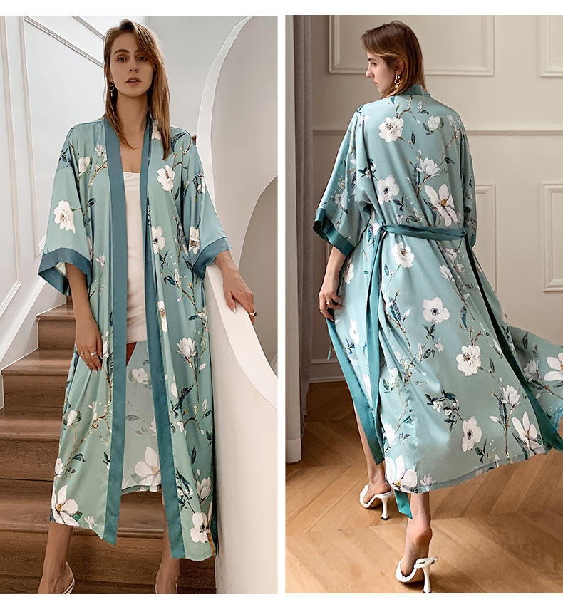 رداء جديد لعام 2022 رداء نسائي للربيع والصيف رقيق من الحرير الجليدي ومناظر طبيعية من الدانتيل رداء حمام