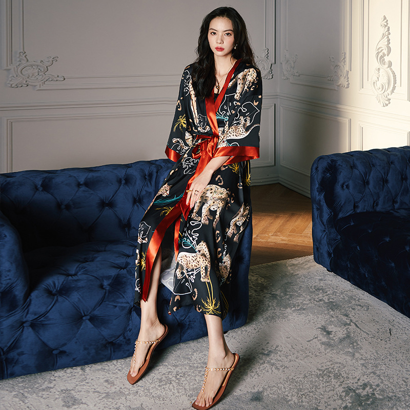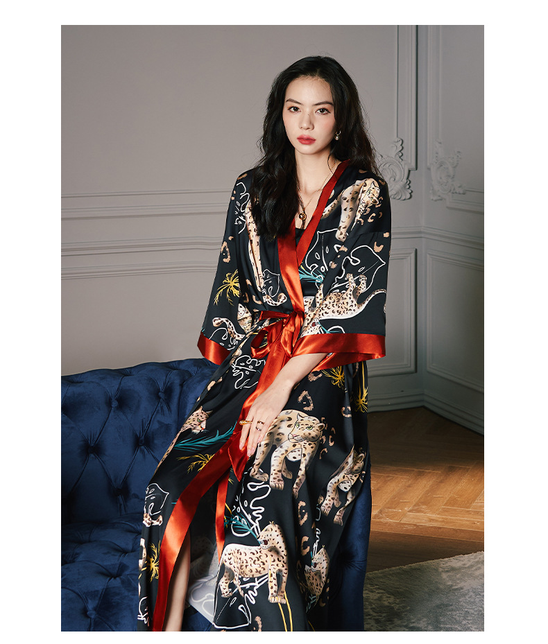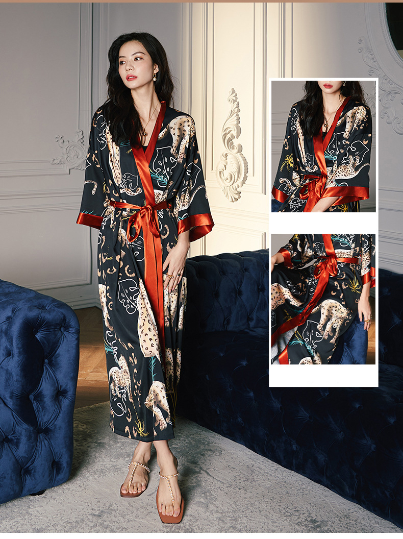 بيجامة من الساتان 2022 ثوب نوم نسائي صيفي خفيف ليوبارد ملابس منزلية للربيع والخريف