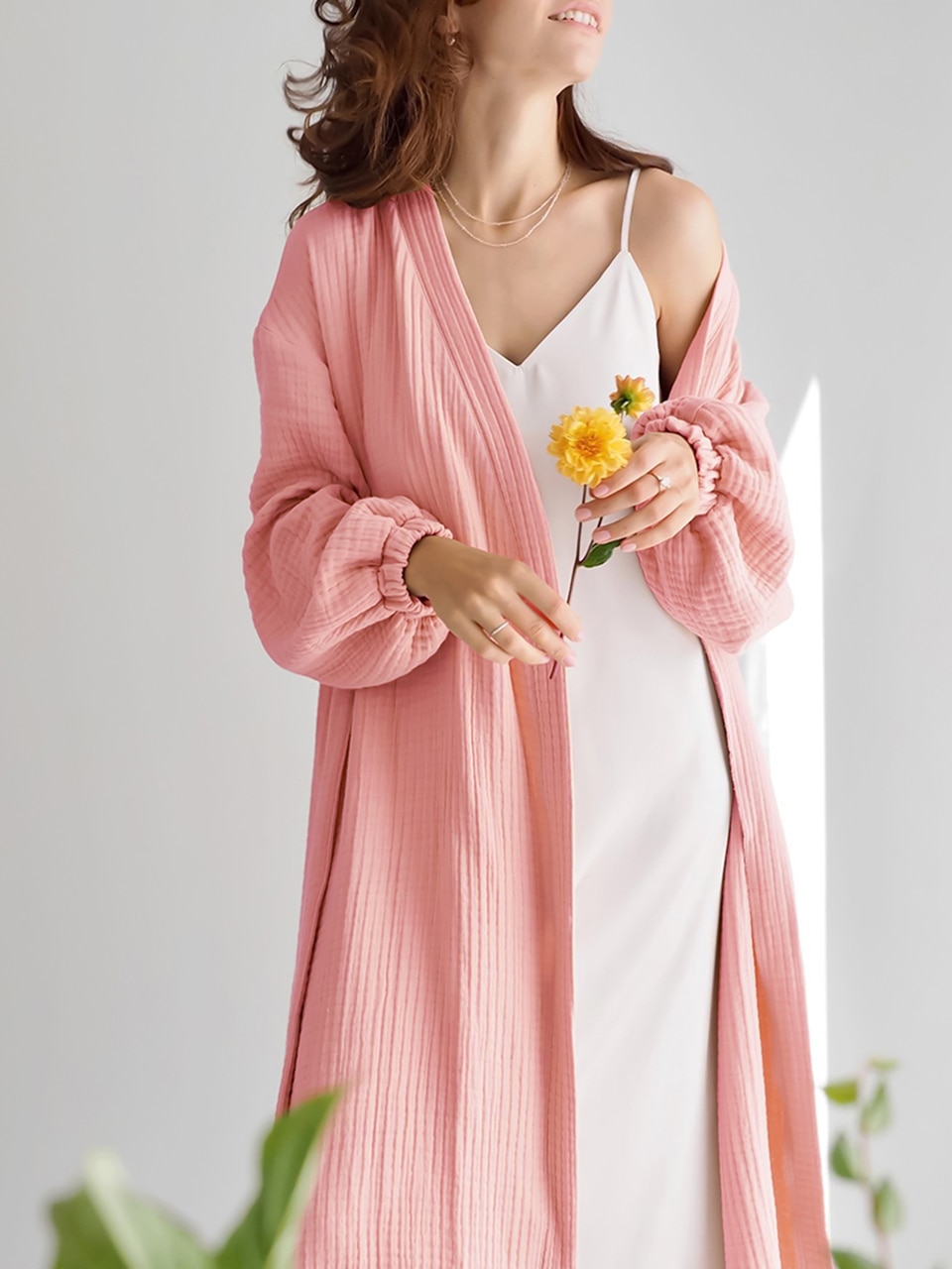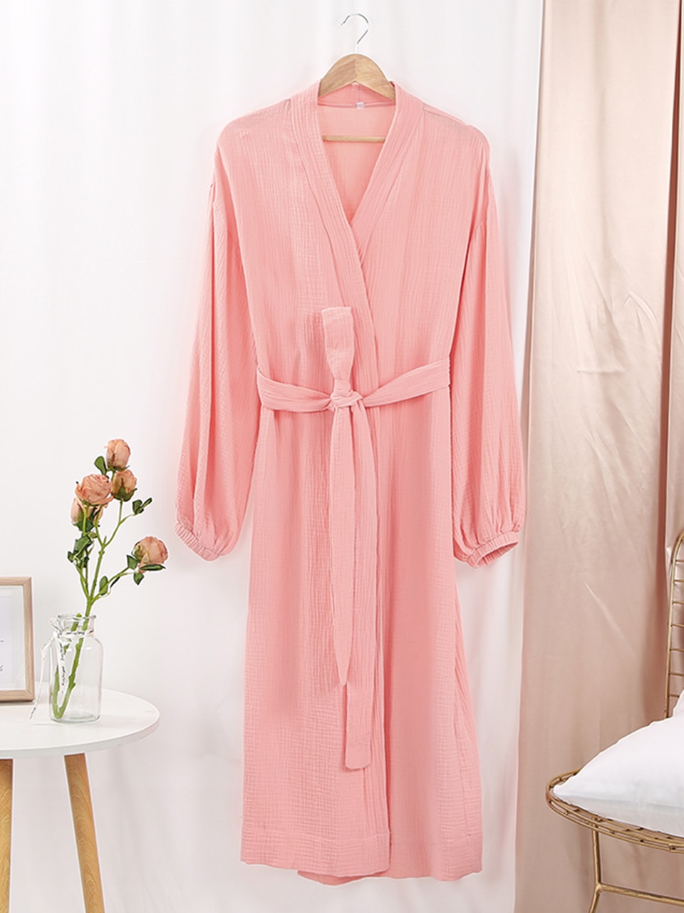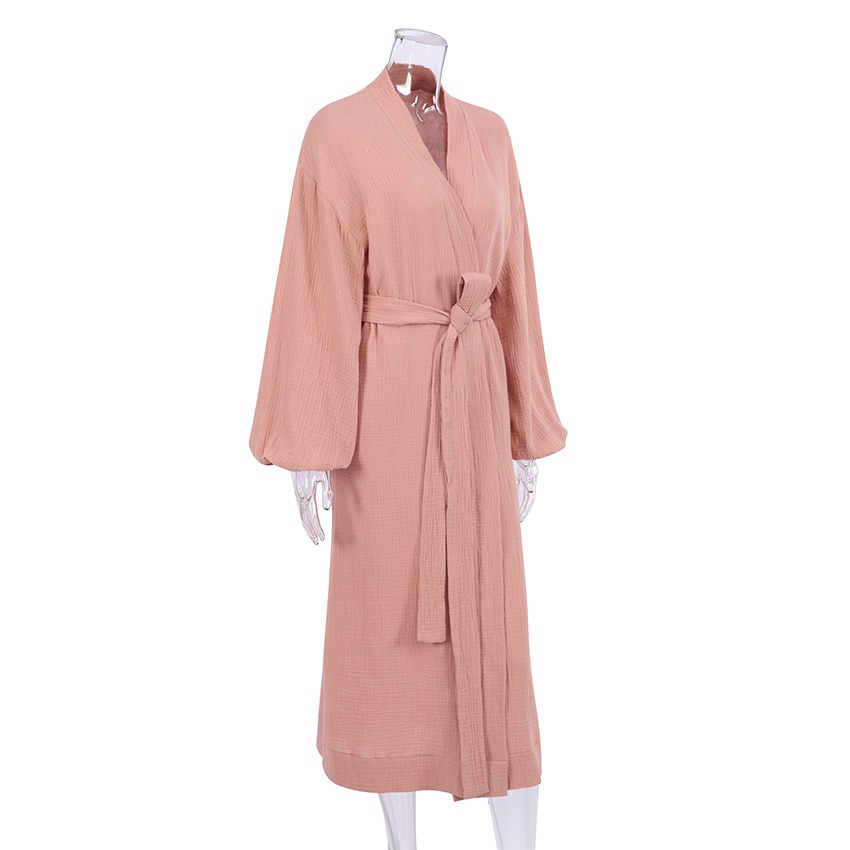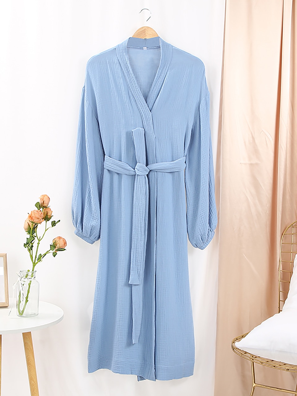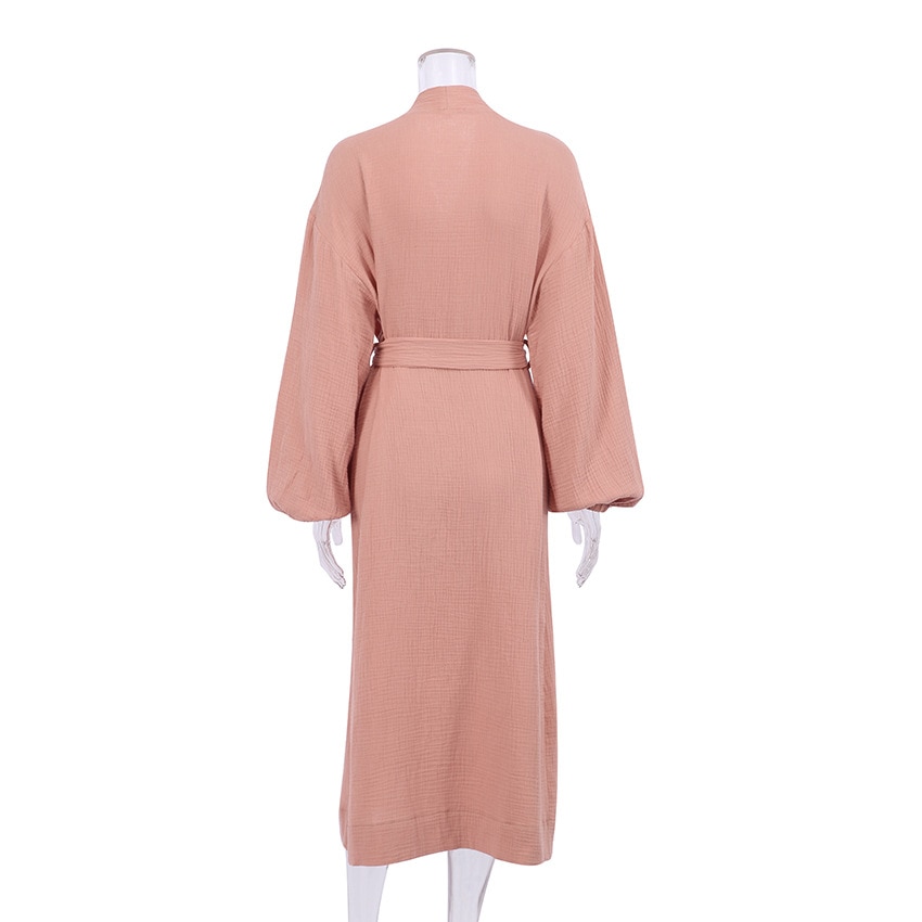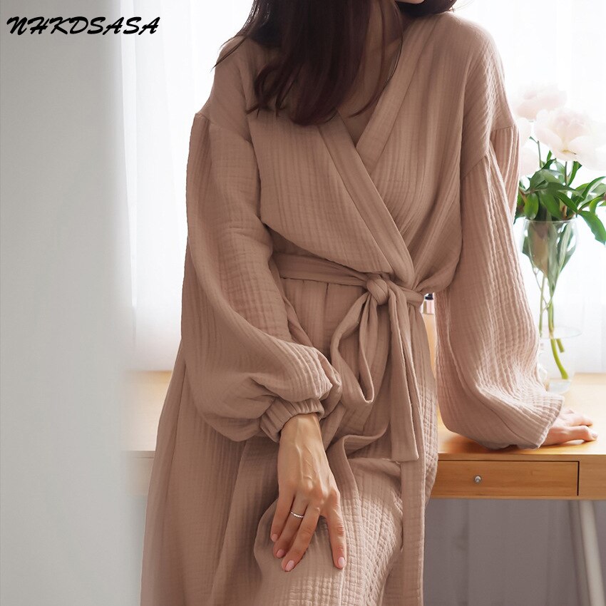 NHKDSASA ملابس نوم بلون سادة رداء نسائي بأكمام منتفخة رداء حمام نسائي ملابس نوم قطنية رداء نسائي ملابس منزلية ملابس ربيعية للاستلقاء