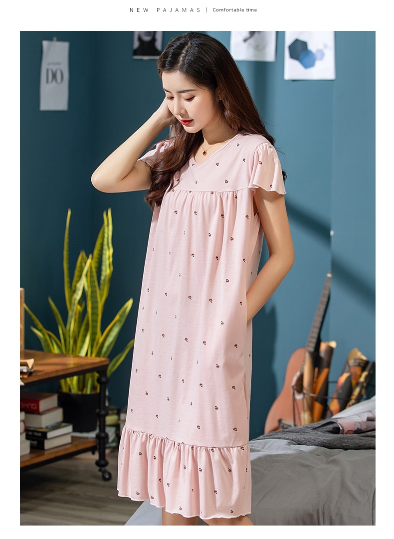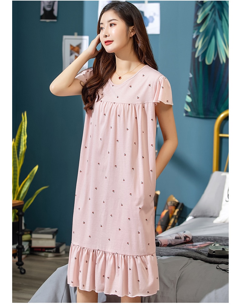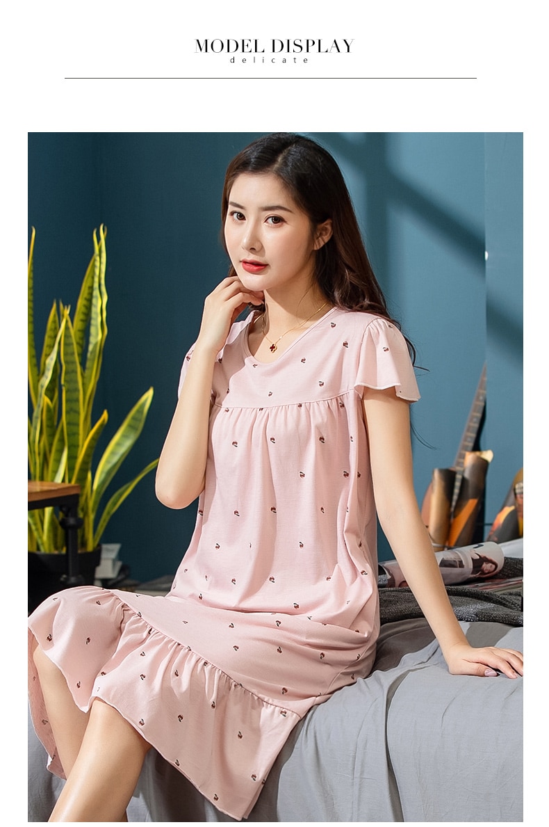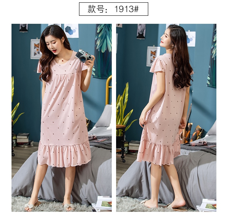 2022 الصيف فستان سهرة الأزهار الصغيرة المرأة ثوب النوم حجم كبير 3XL قمصان النوم قصيرة الأكمام ثوب النوم القطن ملابس خاصة