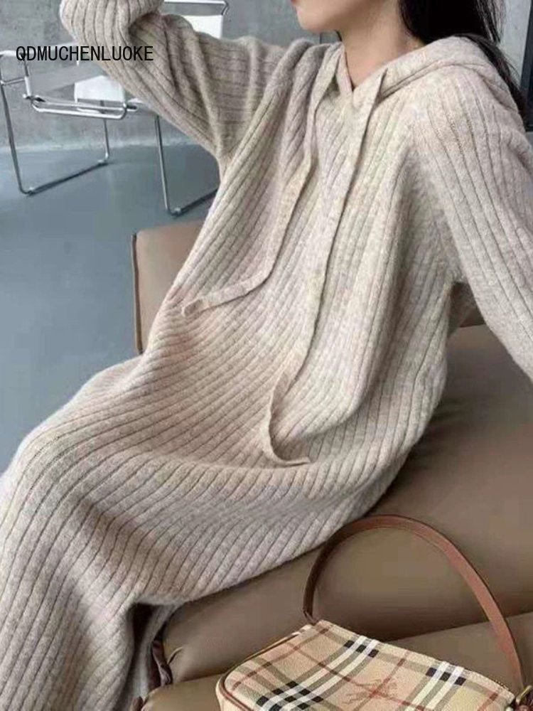 سترة نسائية جديدة لخريف وشتاء 2023 بغطاء للرأس بلون سادة وأكمام طويلة