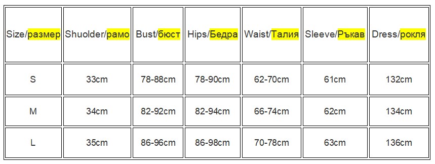 | حجم المنتج | التمثال/الصدر (سم) | كم (سم) | طول التنورة (سم) | الخصر (سم) |