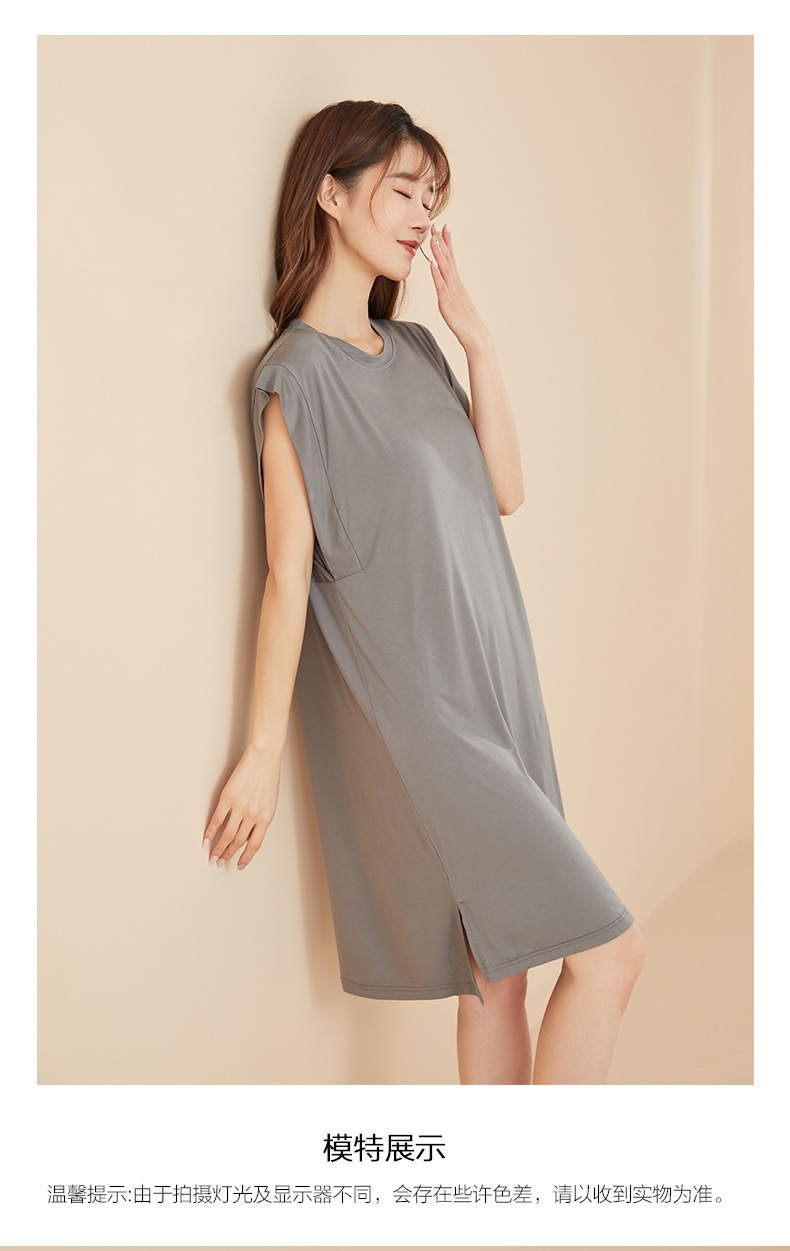 بيجامة نسائية صيفية جديدة من القطن والحرير الجليدي لعام 2023 فستان نوم فضفاض مشروط يمكن للنساء ارتدائه في الخارج في الصيف لمنع تفتيح ملابس المنزل النسائية