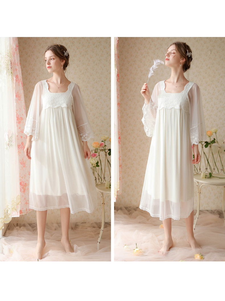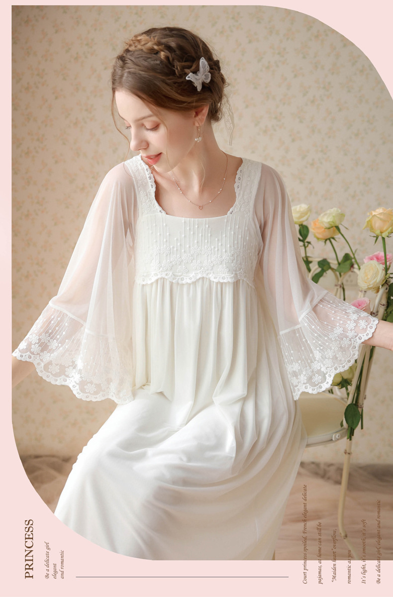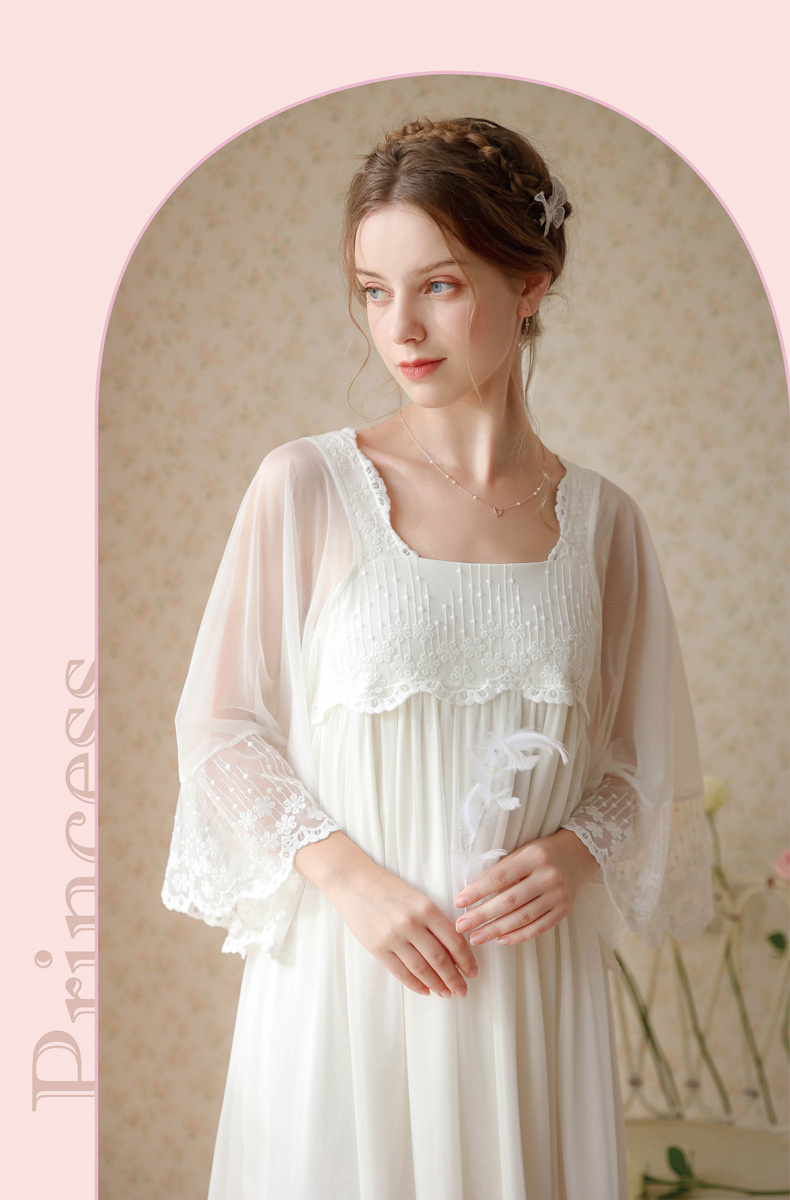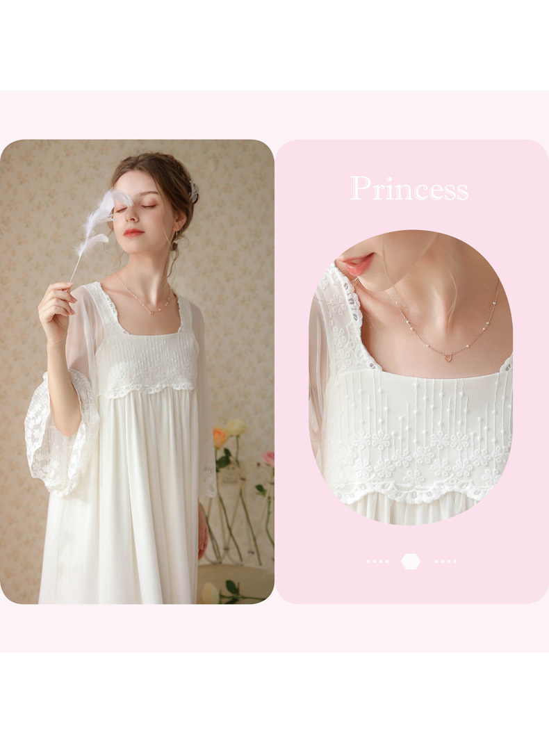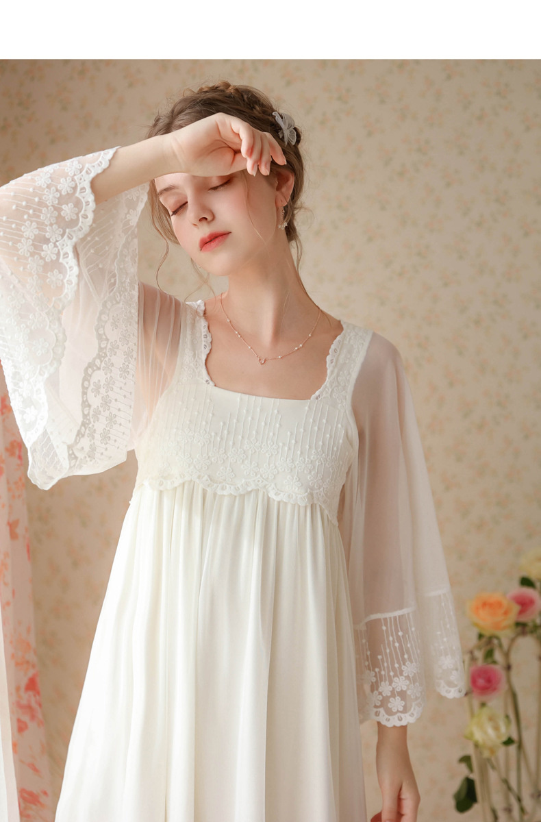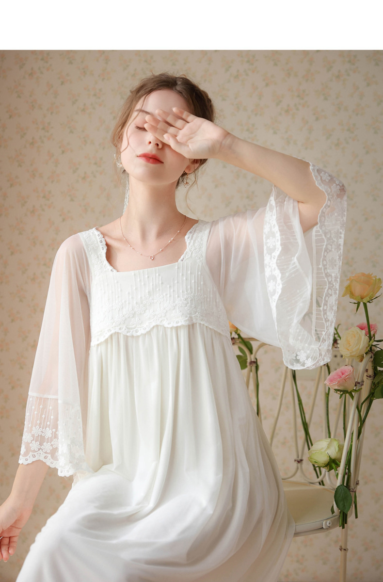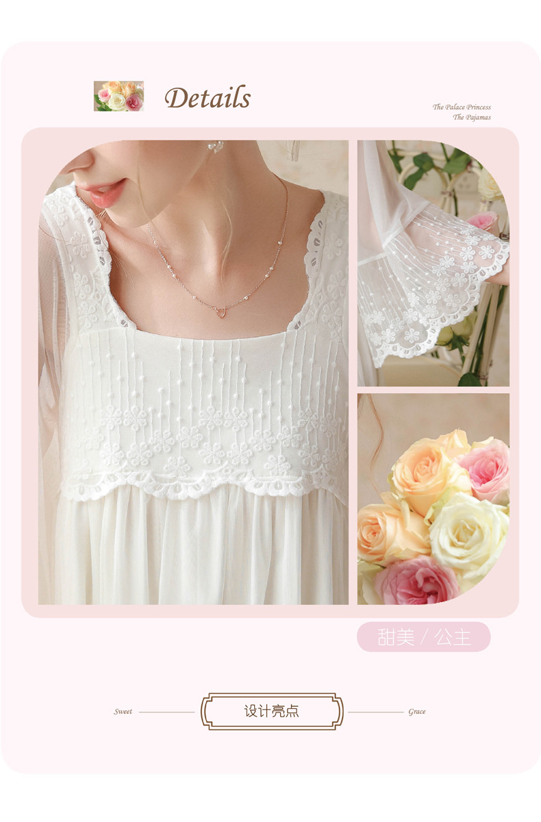 بيجامة طراز جديد 2023 ، نمط المحكمة ، فتاة ، حلوة ، تطريز شبكي فرنسي ، دانتيل ، فستان منزل الصديقات ، بيجامة