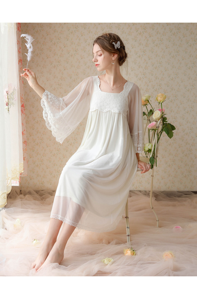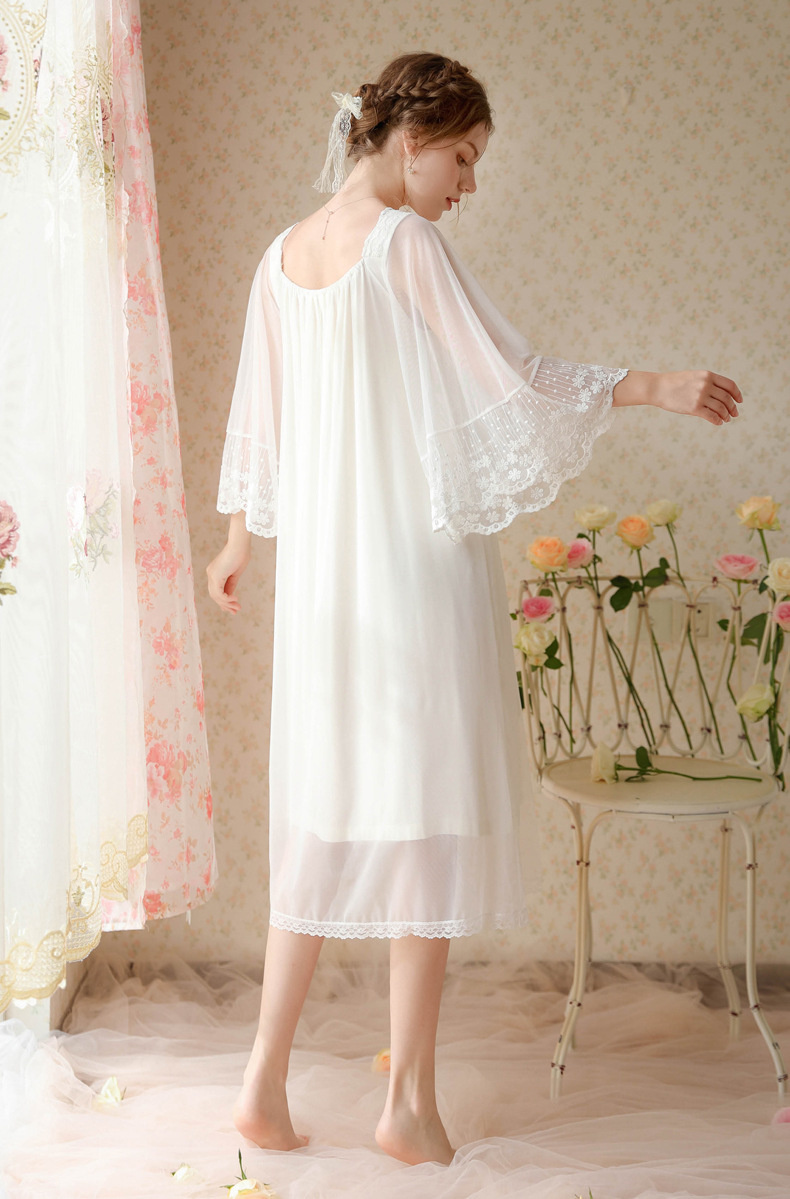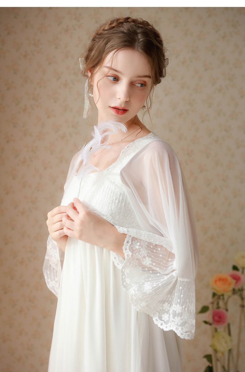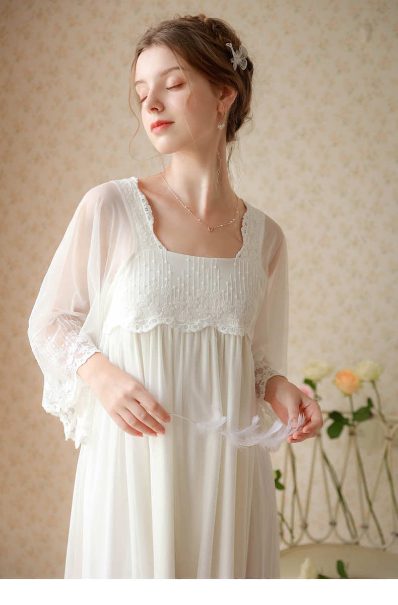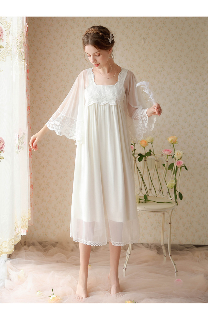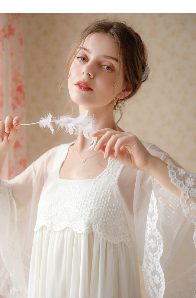 بيجامة طراز جديد 2023 ، نمط المحكمة ، فتاة ، حلوة ، تطريز شبكي فرنسي ، دانتيل ، فستان منزل الصديقات ، بيجامة