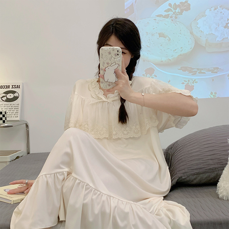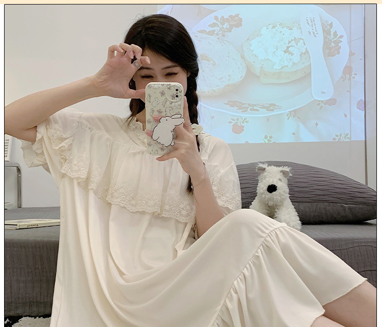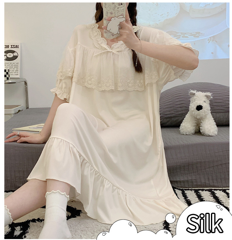 بيجامة جديدة لعام 2023 تنورة بيجامة حريرية صيفية للسيدات بلوفر طويل صيفي غير رسمي فستان نوم فضفاض بنمط نسائي