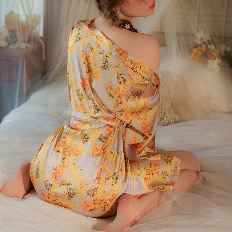 ملابس داخلية مثيرة جديدة لعام 2023 بيجامة مثيرة رداء أصفر سترة وربطة عنق كيمونو رداء حمام بدلة نسائية موحدة