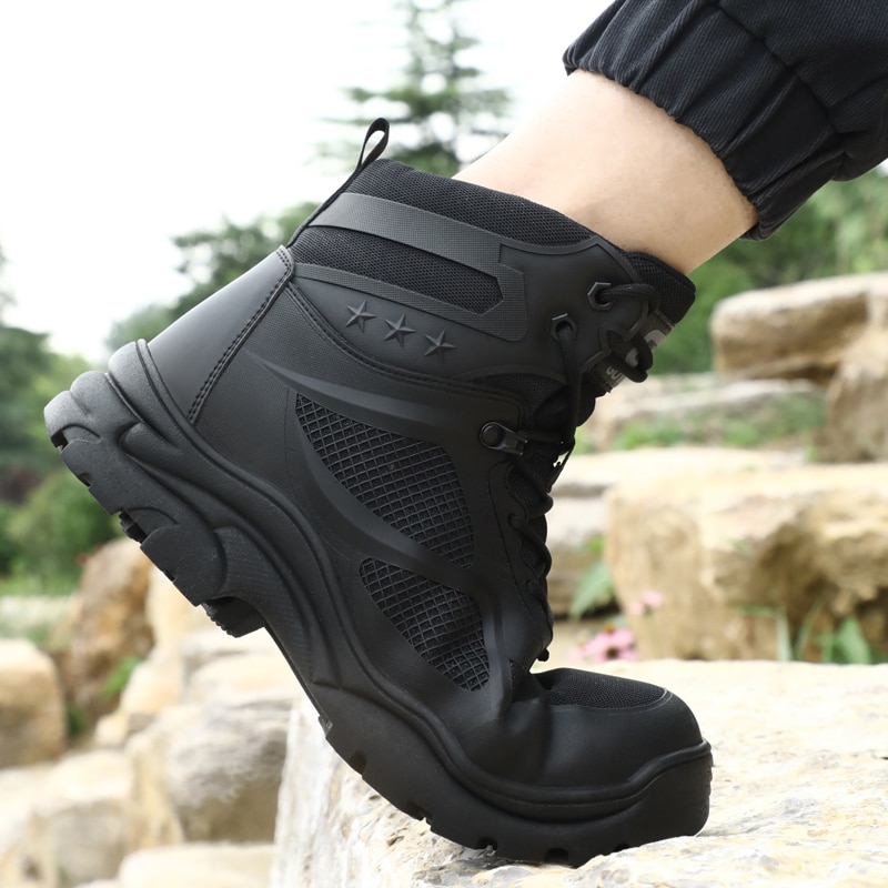 أحذية رجالية للفصول الأربعة من Cross Border، مضادة للتحطيم والثقب، أحذية عالية الحماية من الصلب عند أصابع القدم، أحذية مريحة لحماية العمل، للبيع بالجملة للرجال