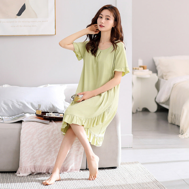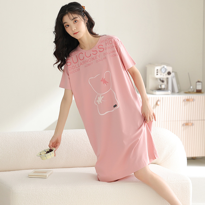 فستان صيفي نسائي جديد لعام 2023 مصنوع من القطن الرائع ومضاد للمحدب مع وسادة صدر فستان نوم فضفاض خدمة منزلية بيجامات للسيدات بلون واحد