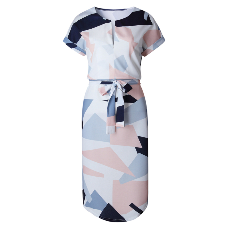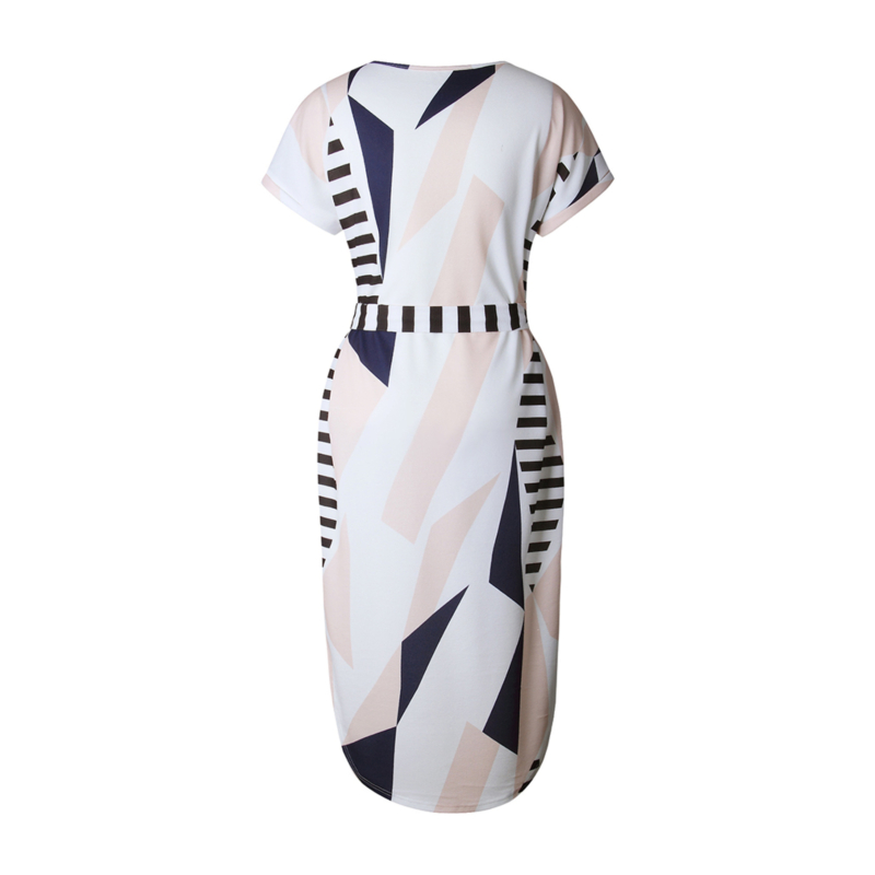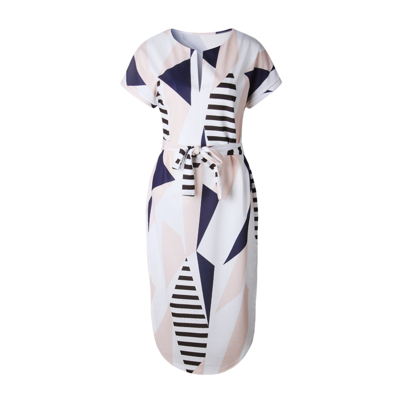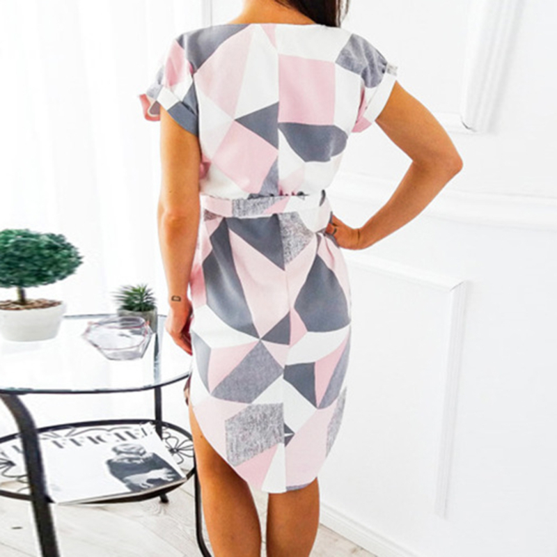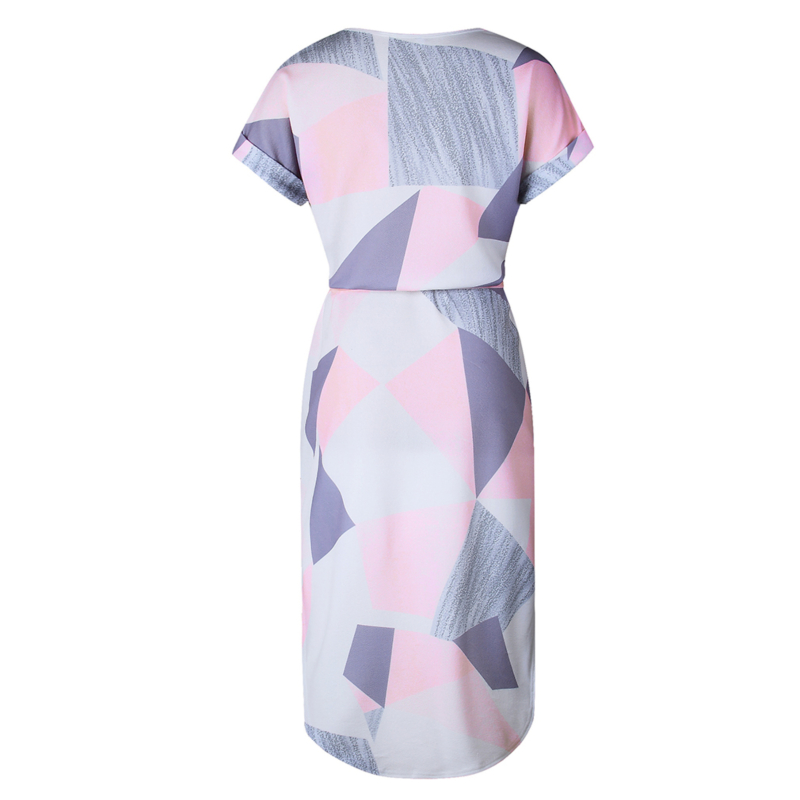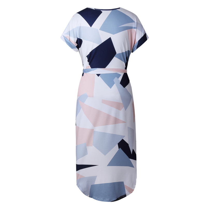 فساتين حفلات ميدي للسيدات موضة 2021 فستان شاطئ بوهو صيفي مطبوع هندسي فضفاض بأكمام جناح الخفّاش فستان فيستدوس مقاس كبير