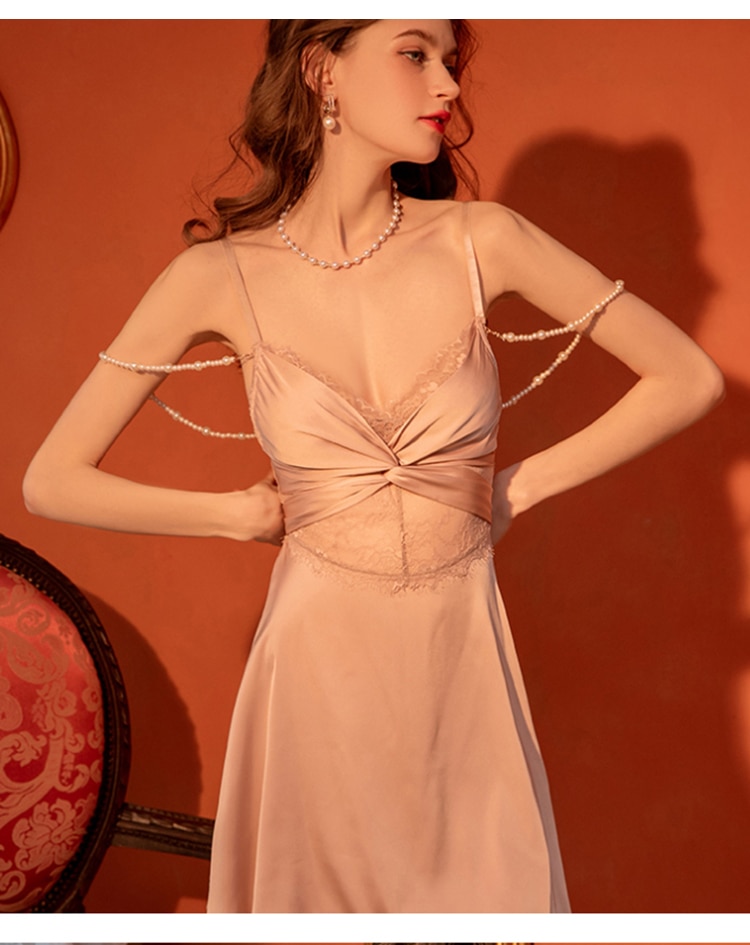 ملابس منزلية للسيدات لعام 3023 بيجامات مقاس كبير مثيرة برغبة نقية وحزام من الساتان وحزام من اللؤلؤ مخرج المصنع