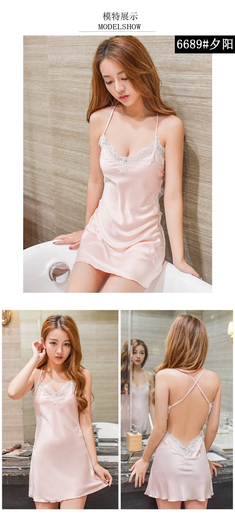 باي Shiweidi بيجامة الحرير الجليد مثير حبال باس النوم الرسن الدانتيل الإناث الصيف محاكاة الحرير