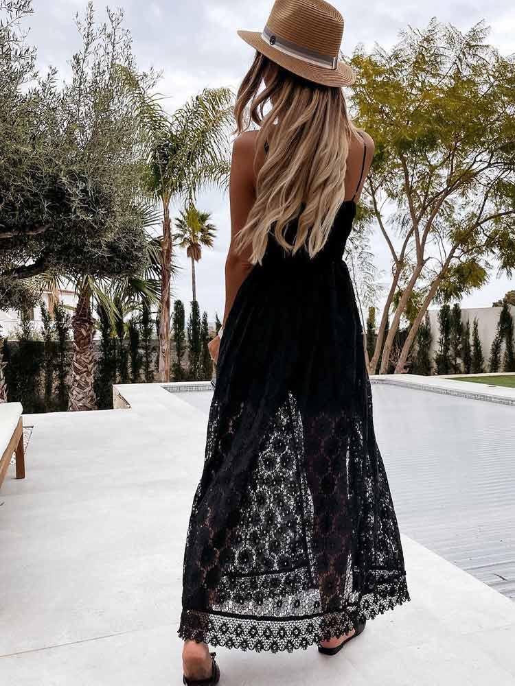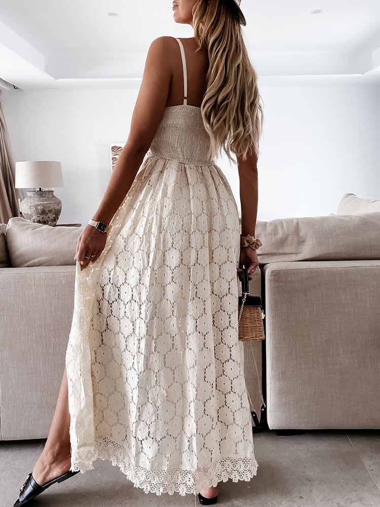 بوهو فستان المرأة الصيف ماكسي فستان سيدة قبالة الكتف عطلة الدانتيل الخامس الرقبة السباغيتي حزام فستان الشمس الأبيض