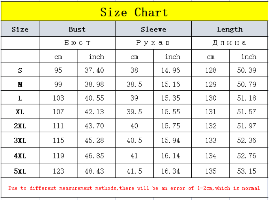 | 5XL | 123 سم | 41.5 سم | 135 سم |