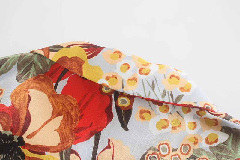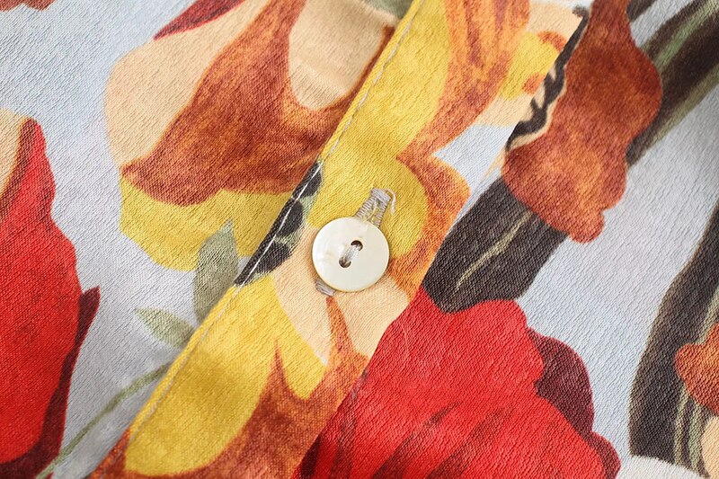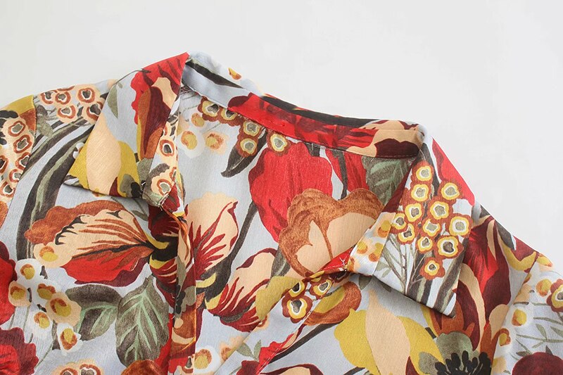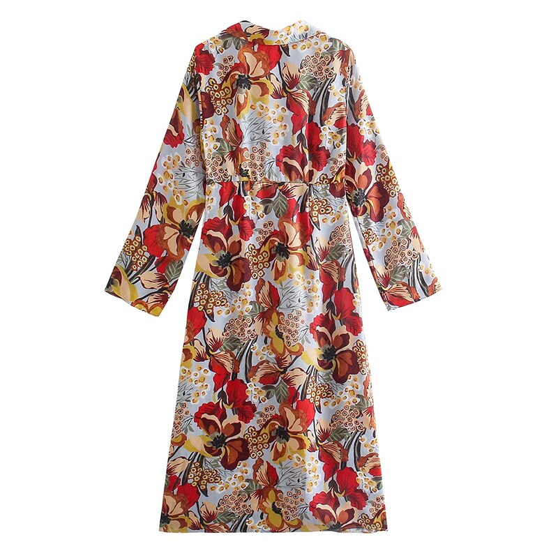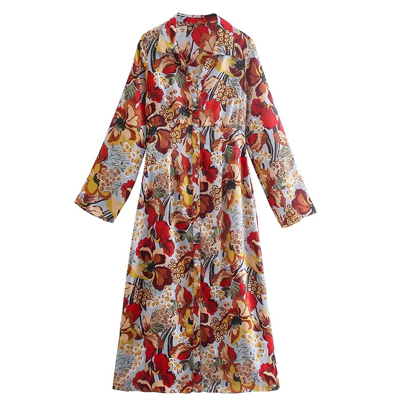 فساتين متوسطة الطول بطبعة زهور على طراز بوهو وياقة مقلوبة وأكمام طويلة فساتين نسائية غير رسمية فضفاضة على شكل حرف A فساتين فيستيدوس