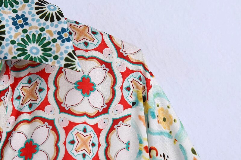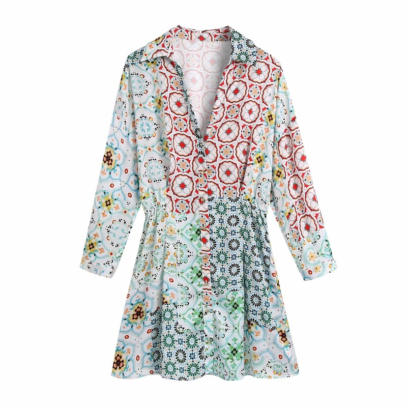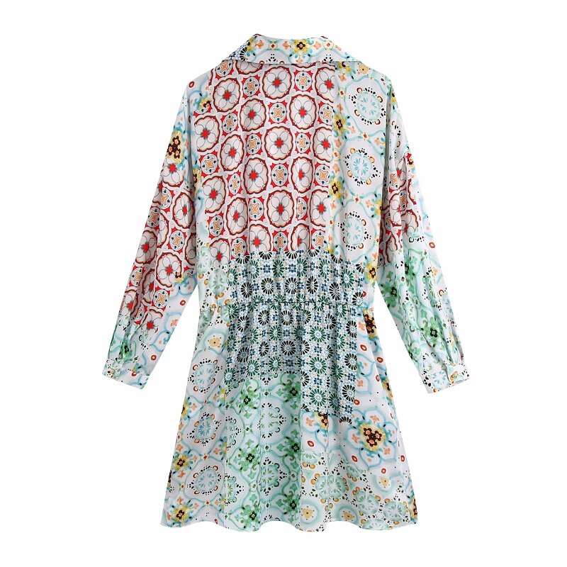 فستان بوهو ستايل قصير مطبوع عليه زهور نصف كم وياقة مقلوبة فساتين أنيقة على شكل حرف A فساتين نسائية أنيقة غير رسمية