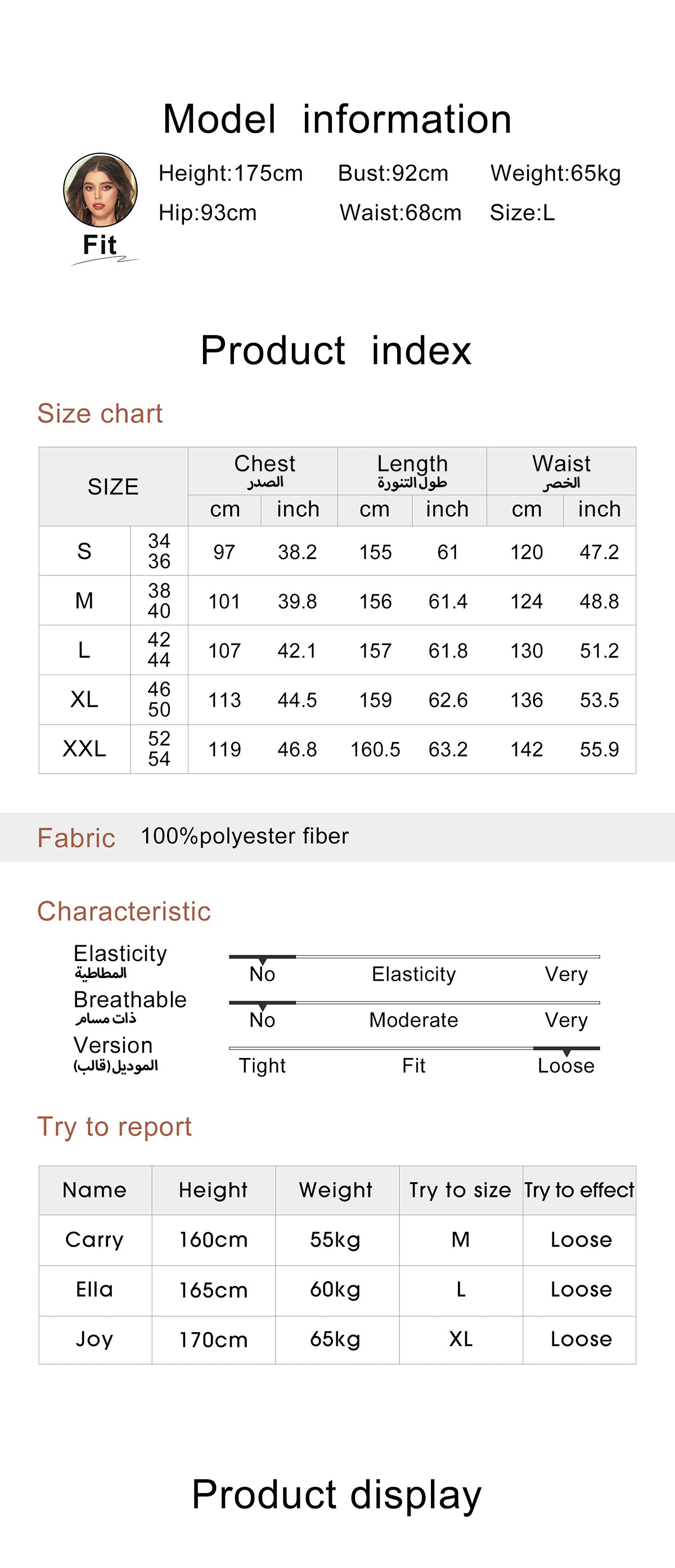 | حجم المنتج | التمثال/الصدر (سم) | طول التنورة (سم) | الخصر (سم) |