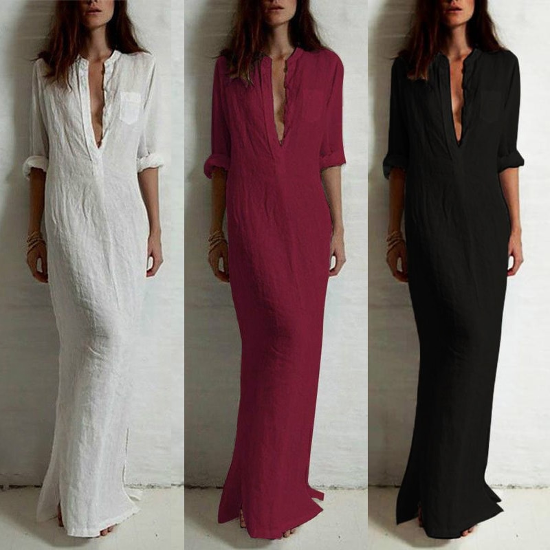 فستان صيفي للسيدات من Easehut 2022 قميص بوهيمي مصفح صلب بأكمام طويلة وأزرار قميص فستان صيفي أنيق فستان ماكسي فضفاض كبير وصغير