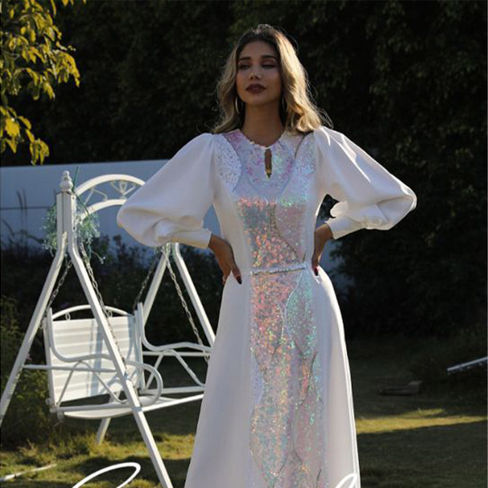 فستان نسائي مسلم أنيق ورفيع على الطراز العرقي مع الترتر