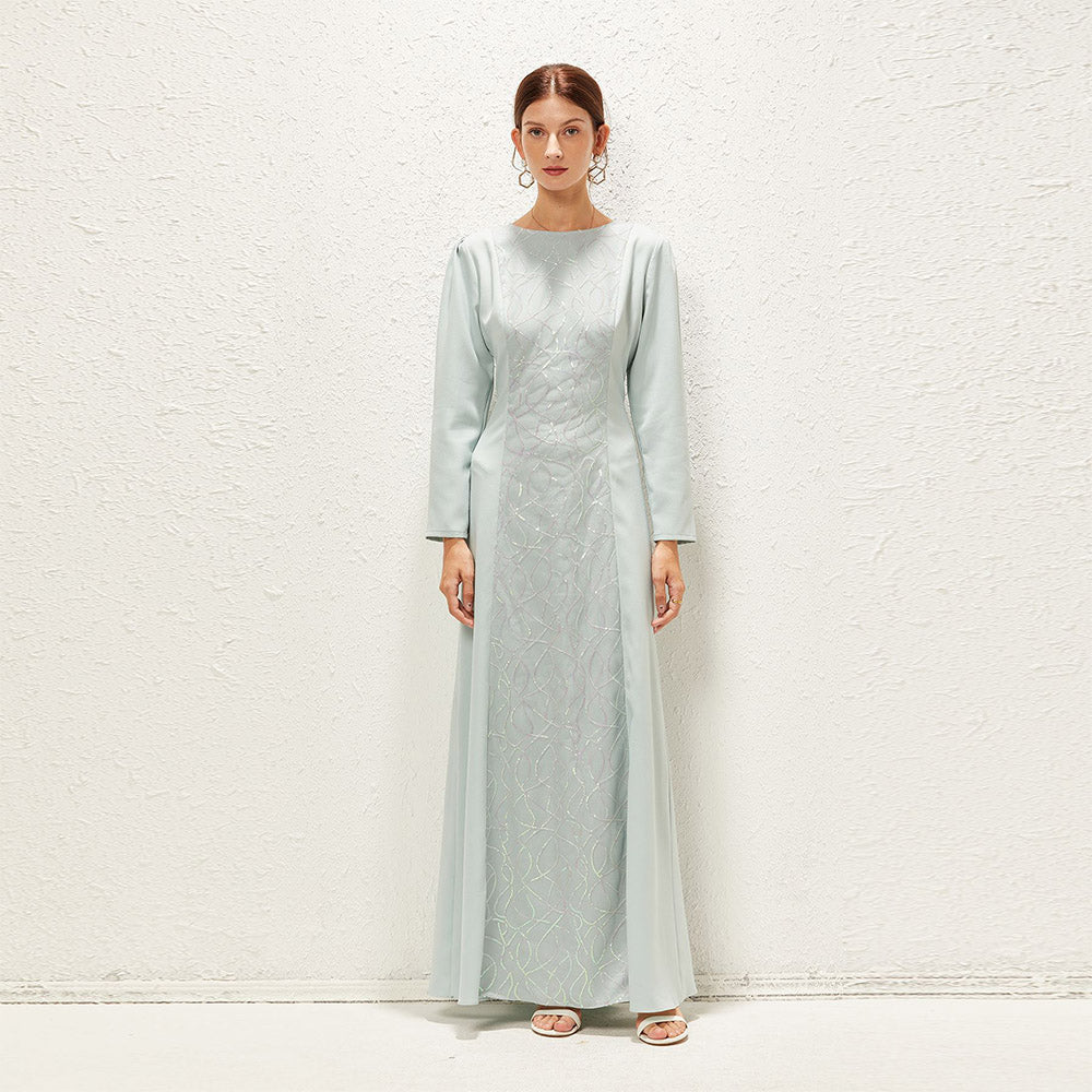 فستان ماكسي أنيق فضفاض ومطرز بالترتر بلون سادة