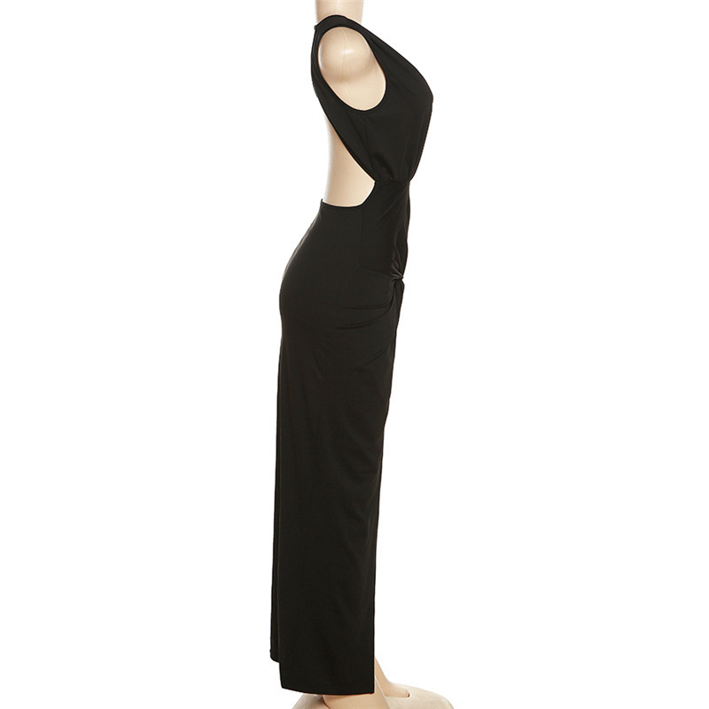 النمط الأوروبي والأمريكي 2023 الربيع والصيف ملابس نسائية جديدة موضة عارية الذراعين مثير الخامس الرقبة طول الساق شق فستان الإناث
