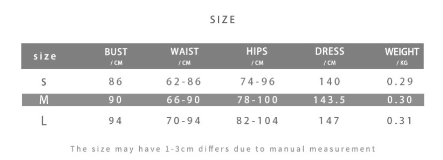 حجم المنتج التمثال/الصدر (سم) طول التنورة (سم) ل -سم -سم م -سم -سم س -سم -سم