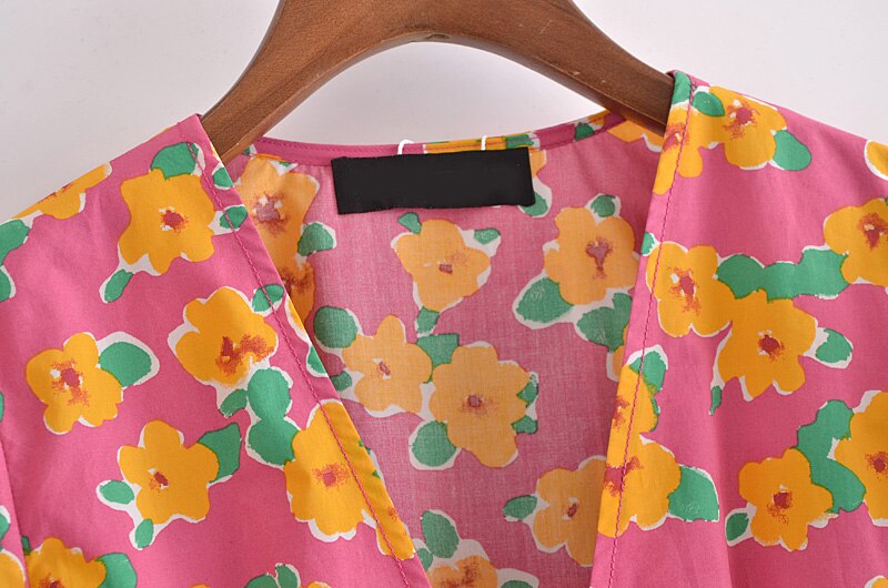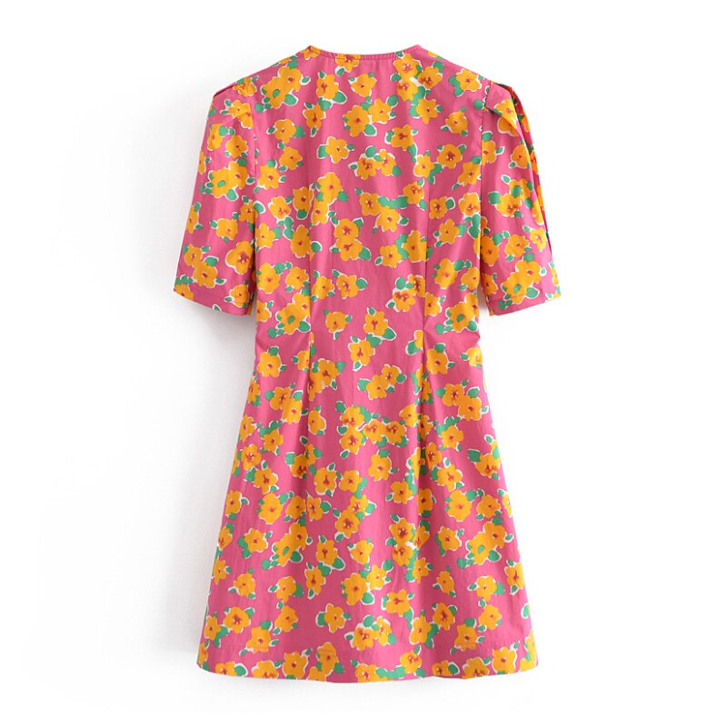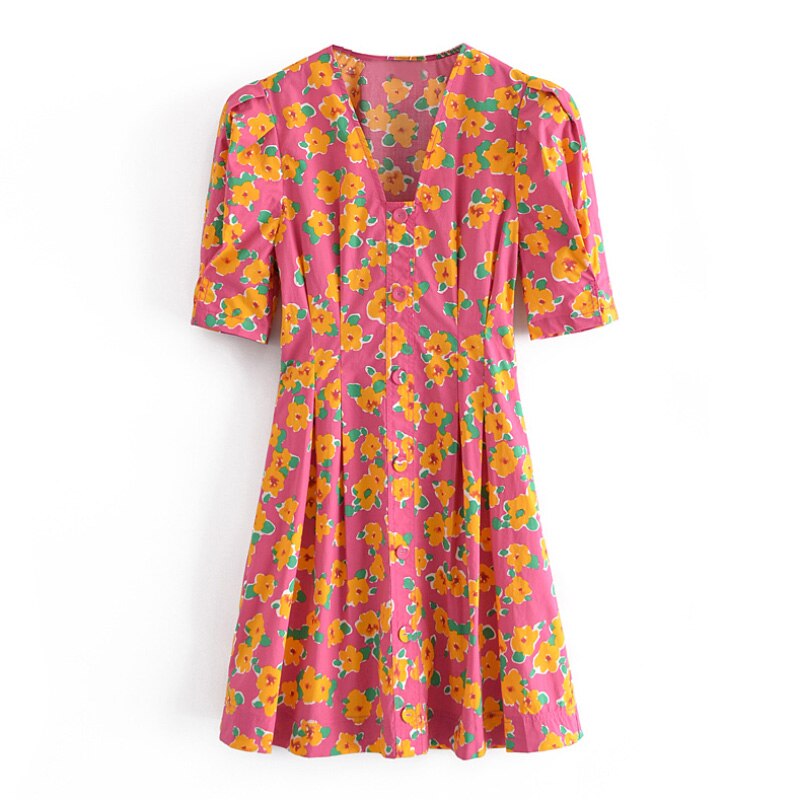فستان قصير موضة 2021 للسيدات بنمط بوهو مطبوع عليه زهور فستان حفلات بأكمام قصيرة فساتين صيفية بطيات ورقبة على شكل V