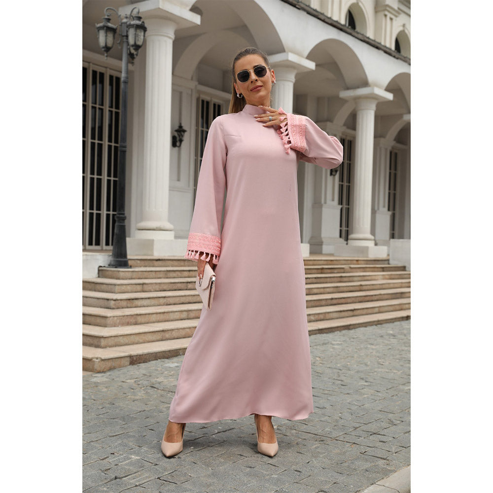 فستان نسائي بأكمام طويلة ولون سادة بسيط