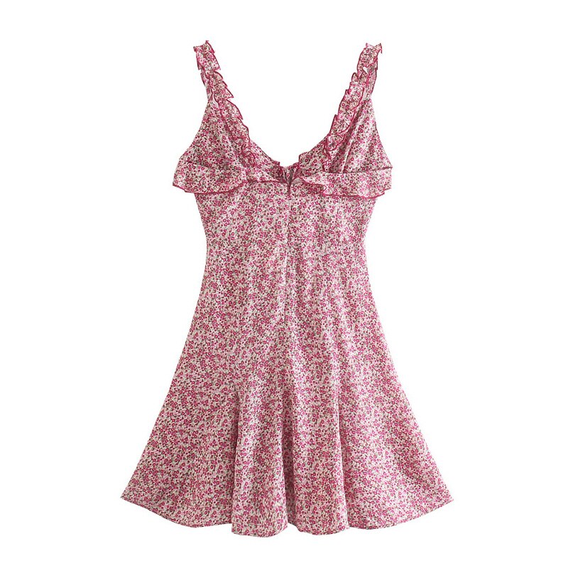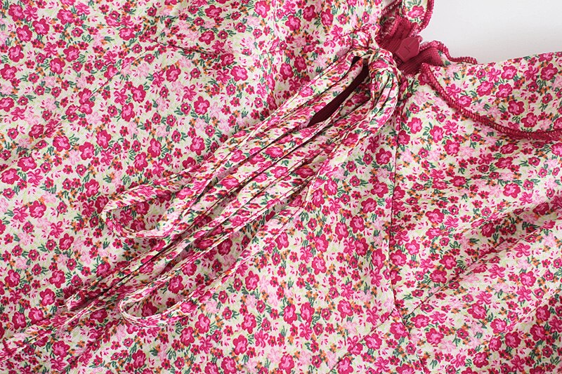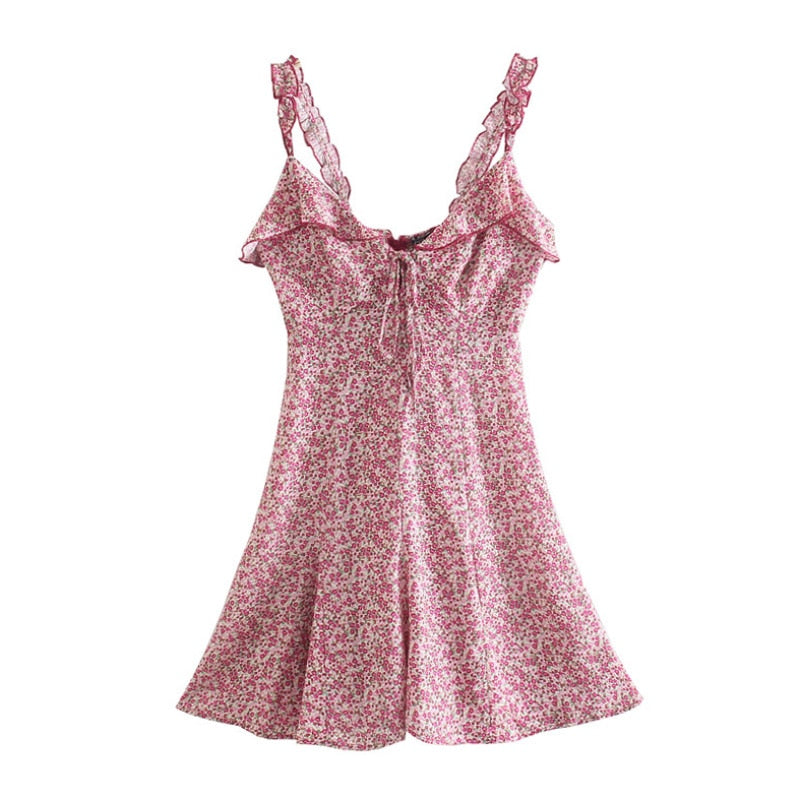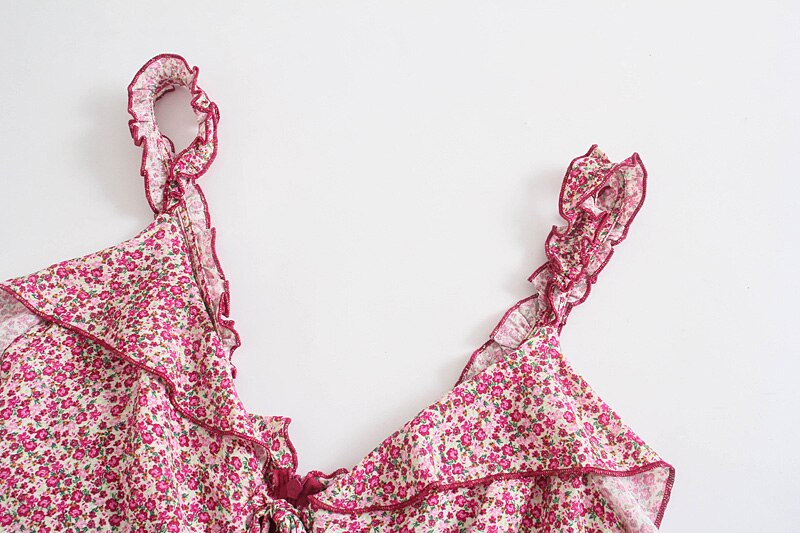 الأزهار المطبوعة بوهو نمط المرأة فستان قصير الخامس الرقبة السباغيتي حزام كشكش فستان الصيف عادية أكمام فساتين عارية الذراعين
