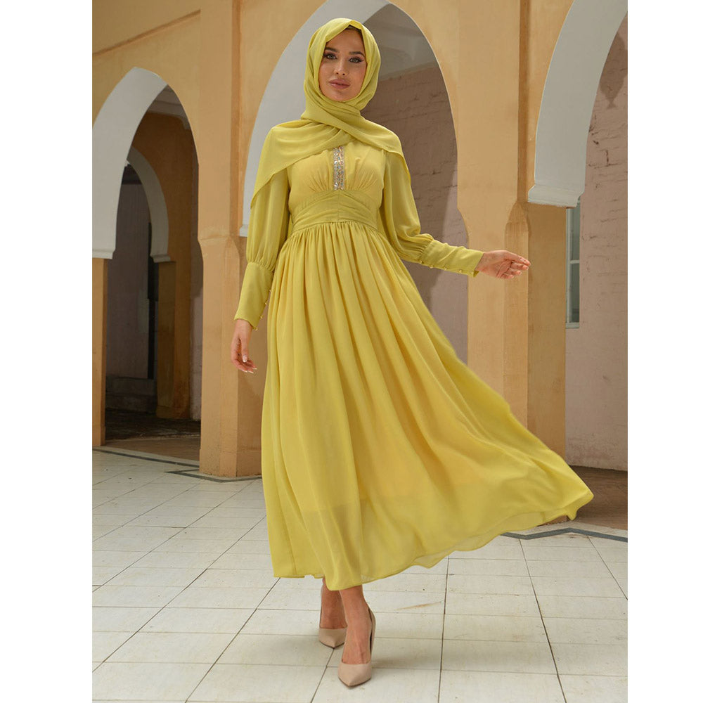 فستان شيفون عالي الجودة بلون موحد، فستان نسائي أنيق ومتطور