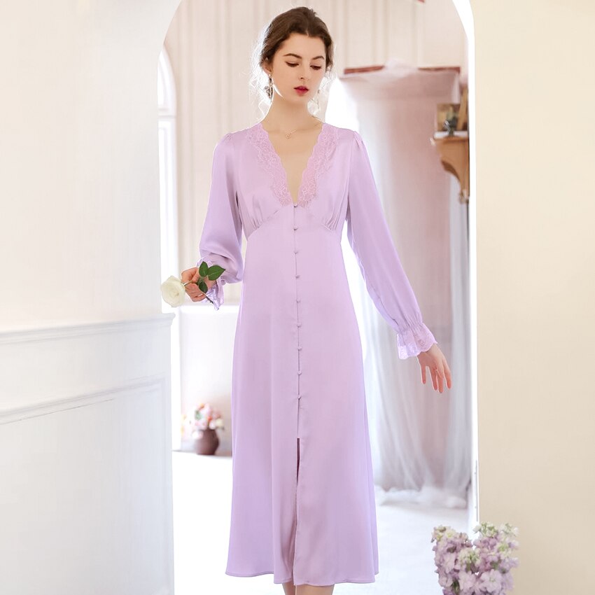 فساتين منزلية من Hiloc واحدة الصدر للنساء ملابس نوم بأربطة وأكمام فانوس فستان نسائي منتصف العجل ثوب نوم نسائي من Winte