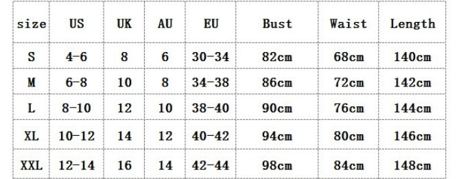 | حجم المنتج | التمثال/الصدر (سم) | طول التنورة (سم) | الخصر (سم) |
