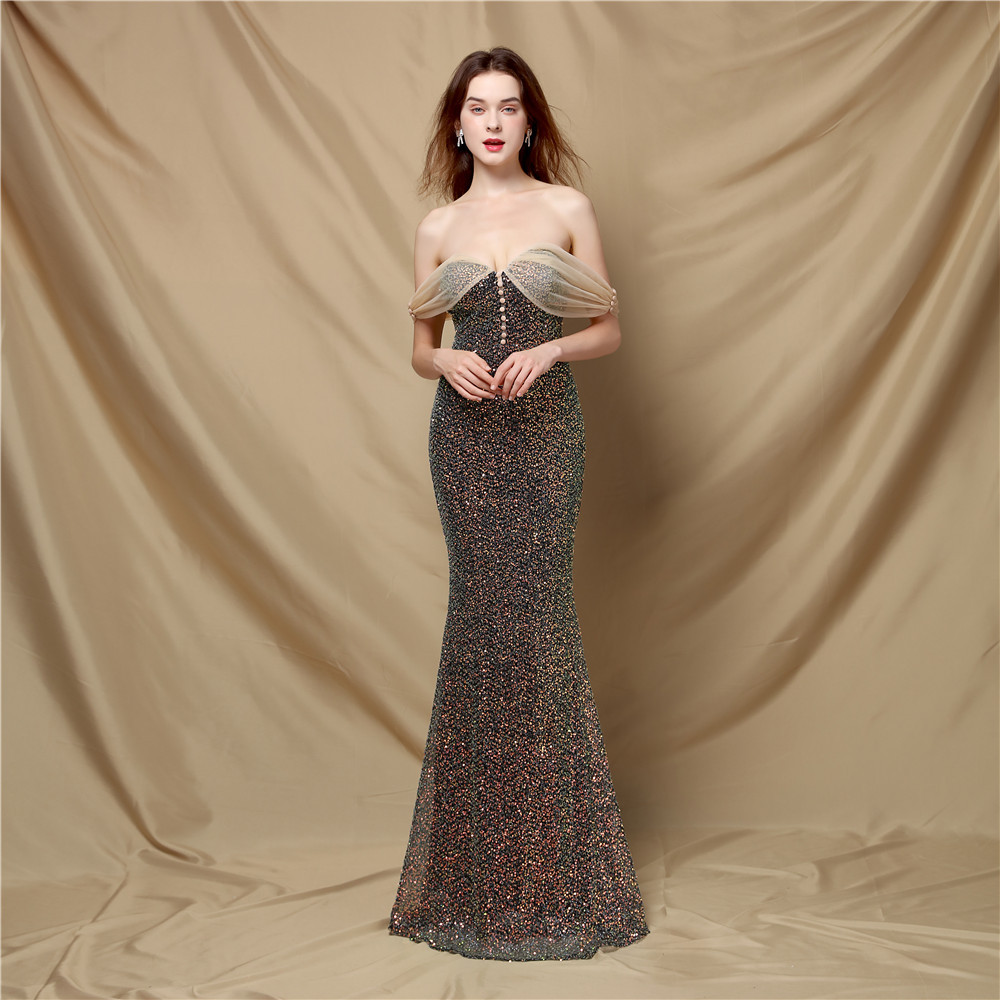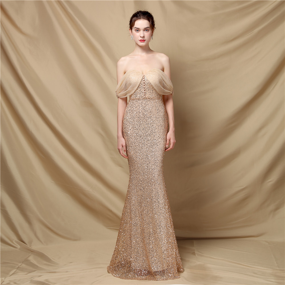 فستان سهرة كلاسيكي جديد بكتف واحد على شكل ذيل السمكة بسعر خاص للنساء، فستان أنيق للولائم السنوية للاجتماعات المخملية، فستان الملكة هالة