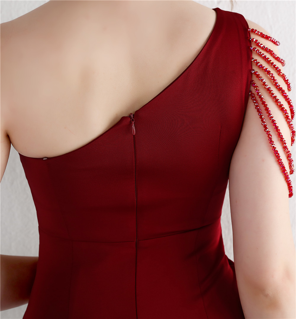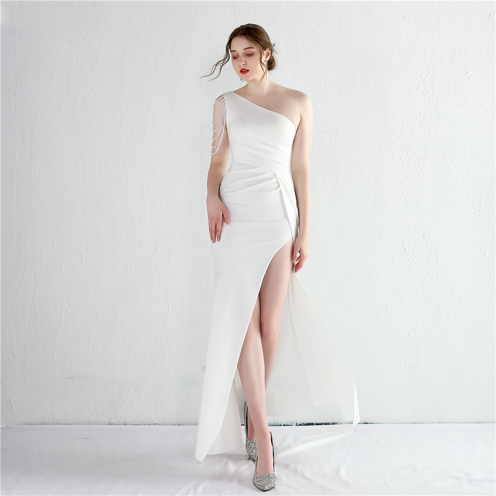 عرض ساخن تنورة جديدة مطرزة بالساتان طويلة بكتف واحد للسيدات تنورة حورية البحر ضيقة لحفلات الزفاف فستان عرض نموذج السيارة