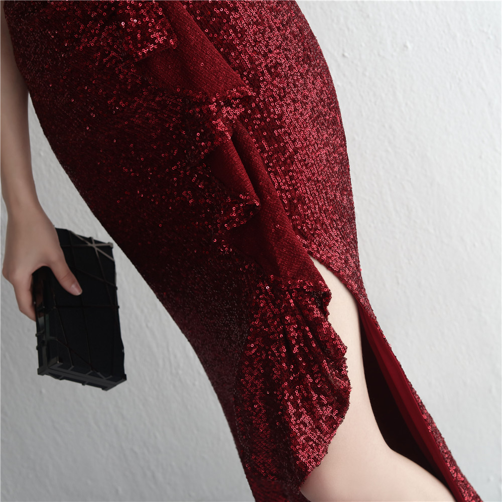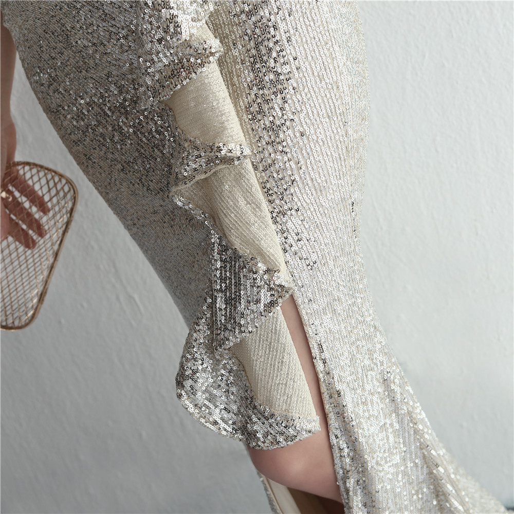 تنورة مأدبة للسيدات مطرزة بالترتر جديدة الأعلى مبيعًا تنورة طويلة مطرزة بالترتر على شكل ذيل السمكة لحفلات العشاء