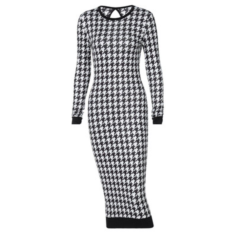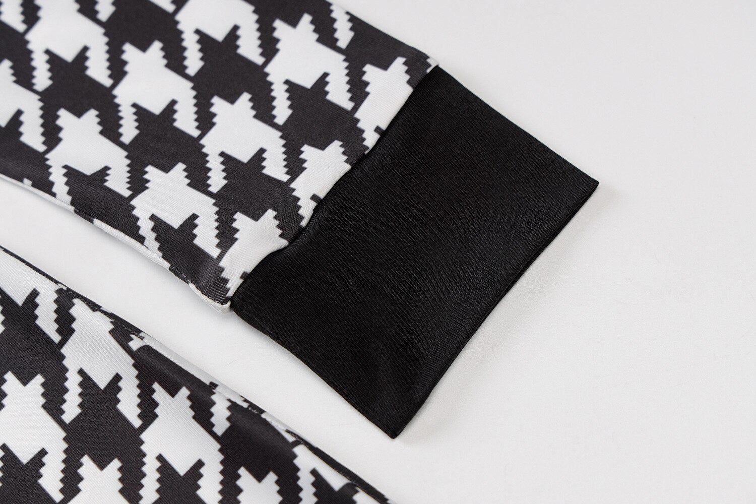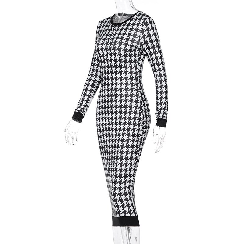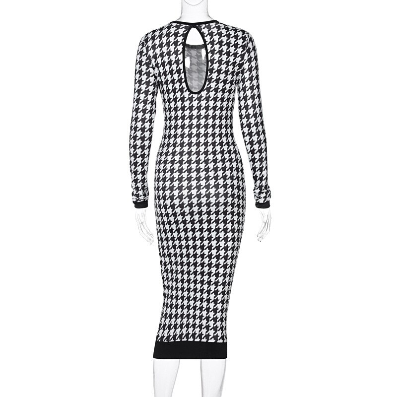 فستان نسائي طويل الأكمام مطبوع بنقشة houndstooth فستان متوسط ​​الطول بفتحات واسعة ملابس خروج مثيرة لخريف وشتاء 2022 نادي أنيق ضيق