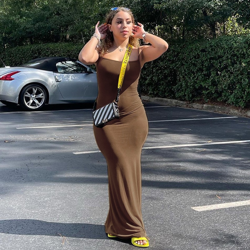 فستان Hugcitar من الساتان بدون أكمام وظهر نحيف مثير ماكسي فستان 2022 ربيع النساء للحفلات Y2K موجزة Bodycon ملابس أنيقة