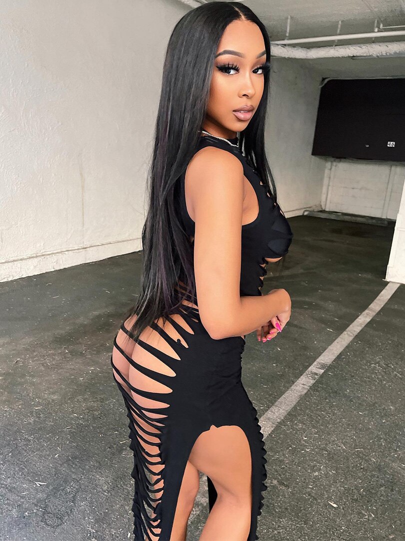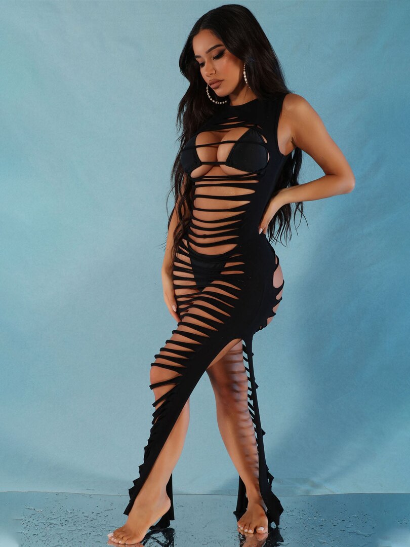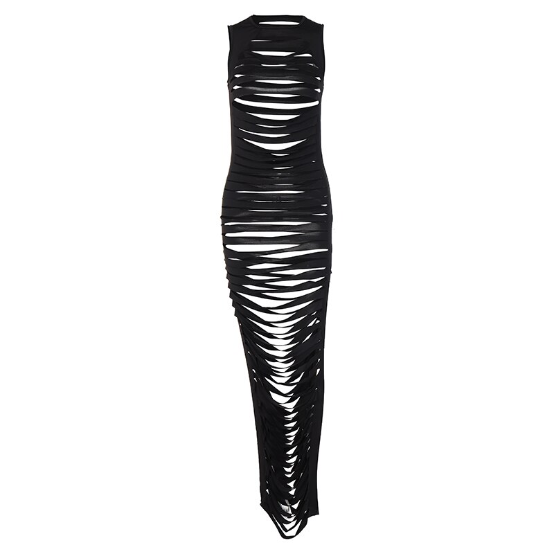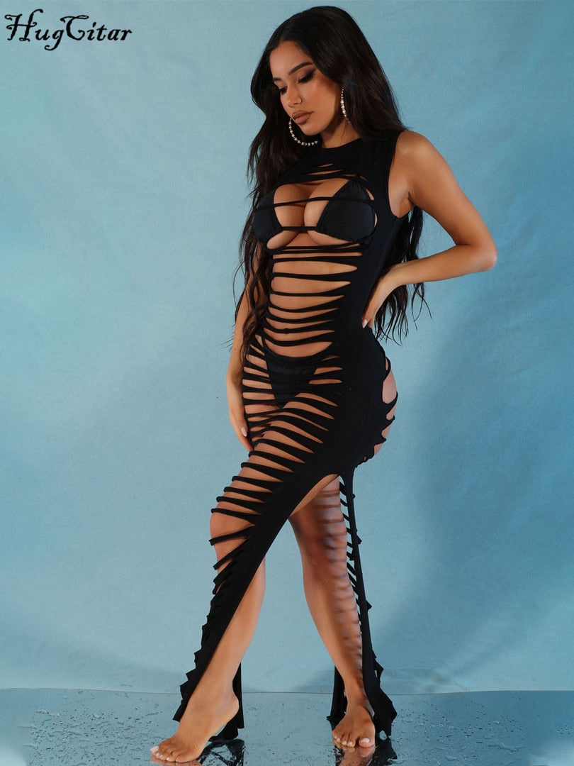 Hugcitar الصلبة الجوف خارج انظر من خلال أكمام كاشفة فستان ماكسي مثير Bodycon 2022 الصيف ملابس النساء الموضة بحر