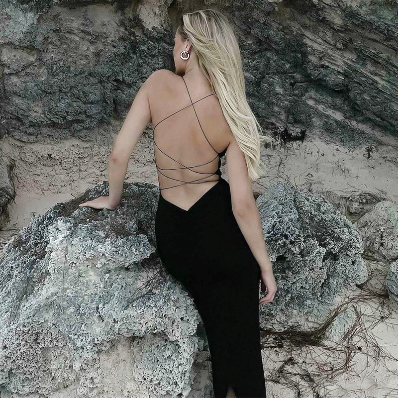 Hugcitar الصلبة أكمام زلة عارية الذراعين الشق مثير Bodycon ميدي فستان حفلة موسيقية الصيف النساء أزياء أنيقة الزي حفل زفاف Y2K