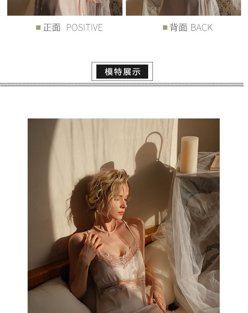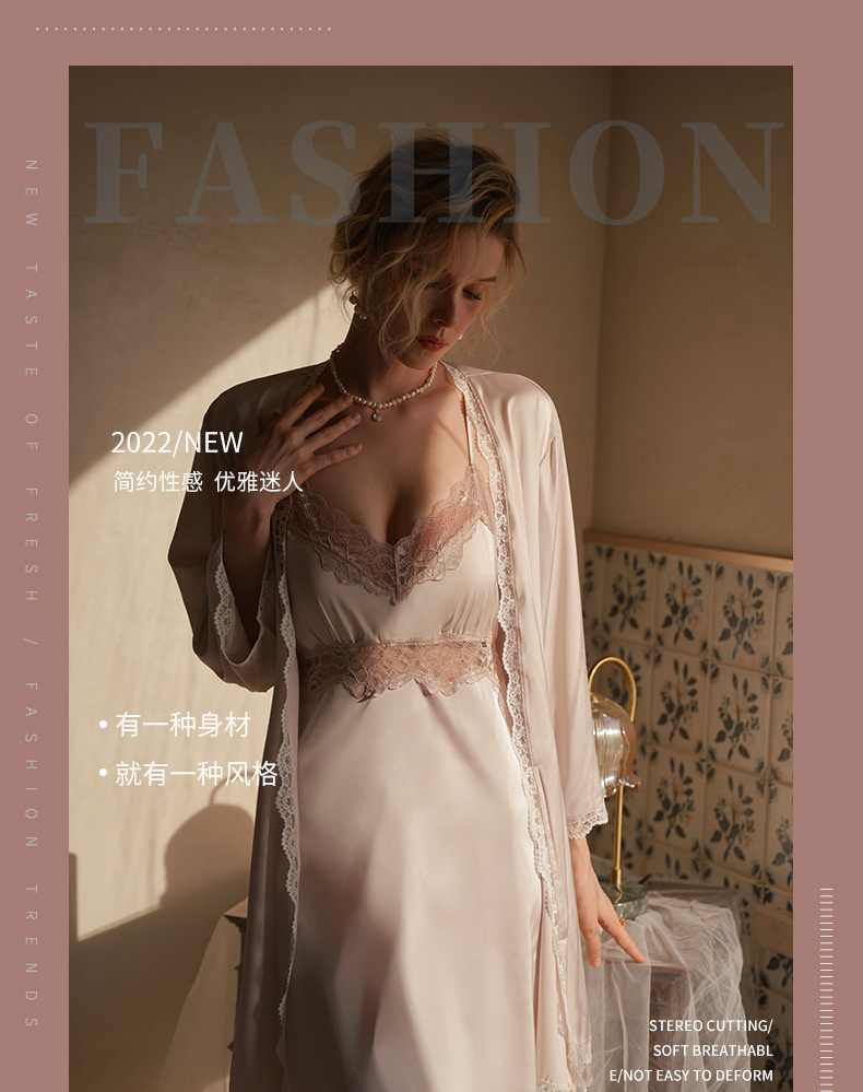 بيجامة من الحرير الجليدي للسيدات بيجامة مثيرة للربيع والخريف من الدانتيل مع وسادات صدر ترغبين فيها بشكل مثير