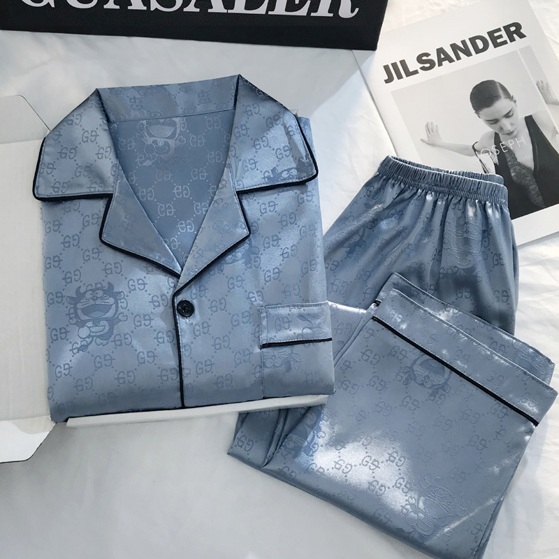 بيجامة من الحرير الجليدي للسيدات للربيع والخريف بأكمام طويلة مقاس كبير يمكن ارتداؤها خارج الخدمة المنزلية بدلة حريرية