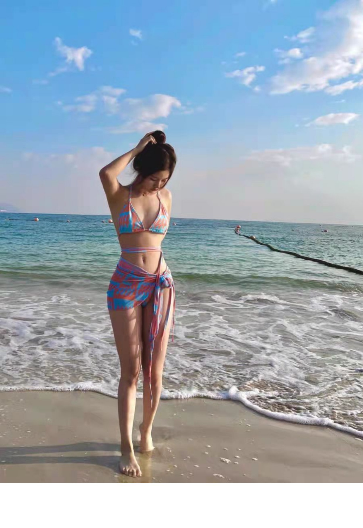 الإنترنت المشاهير مثير فتاة الساخنة انقسام ملابس السباحة الإناث الربيع الساخن عطلة صور ملابس السباحة ثلاث قطع مجموعة