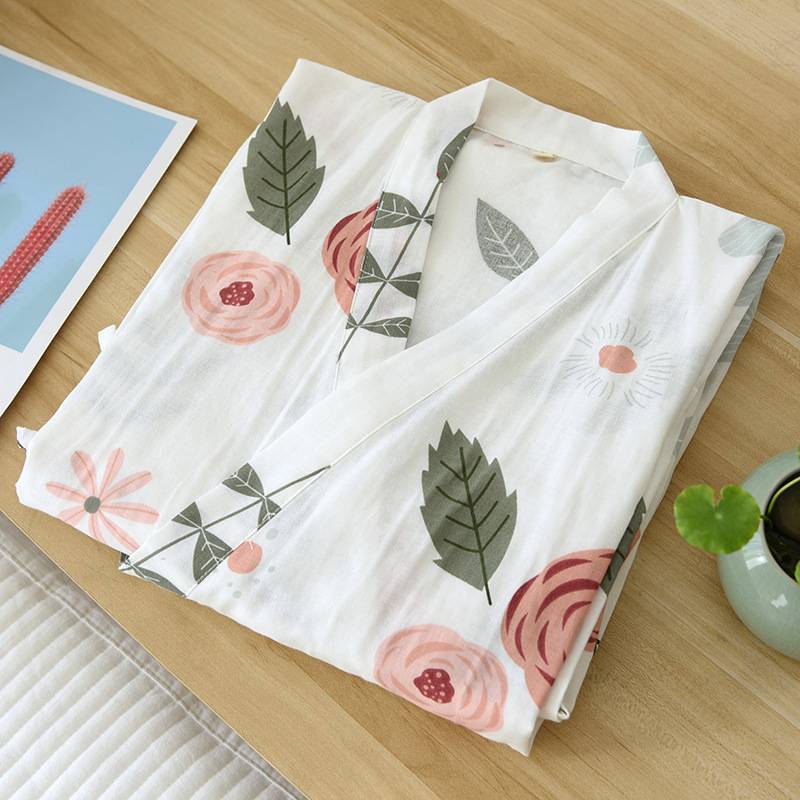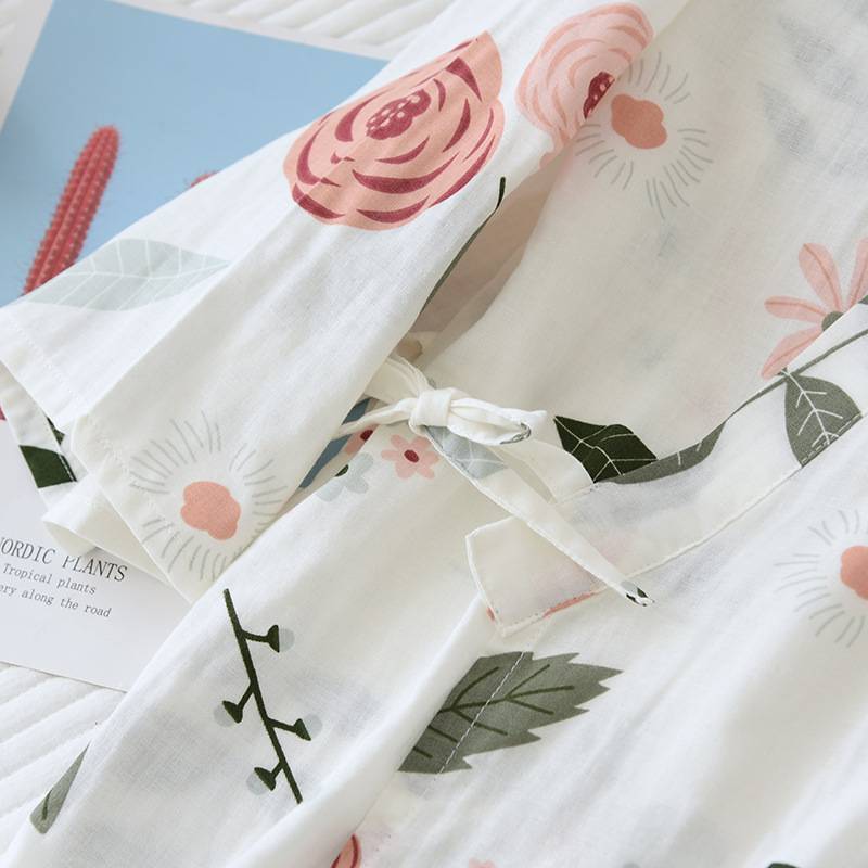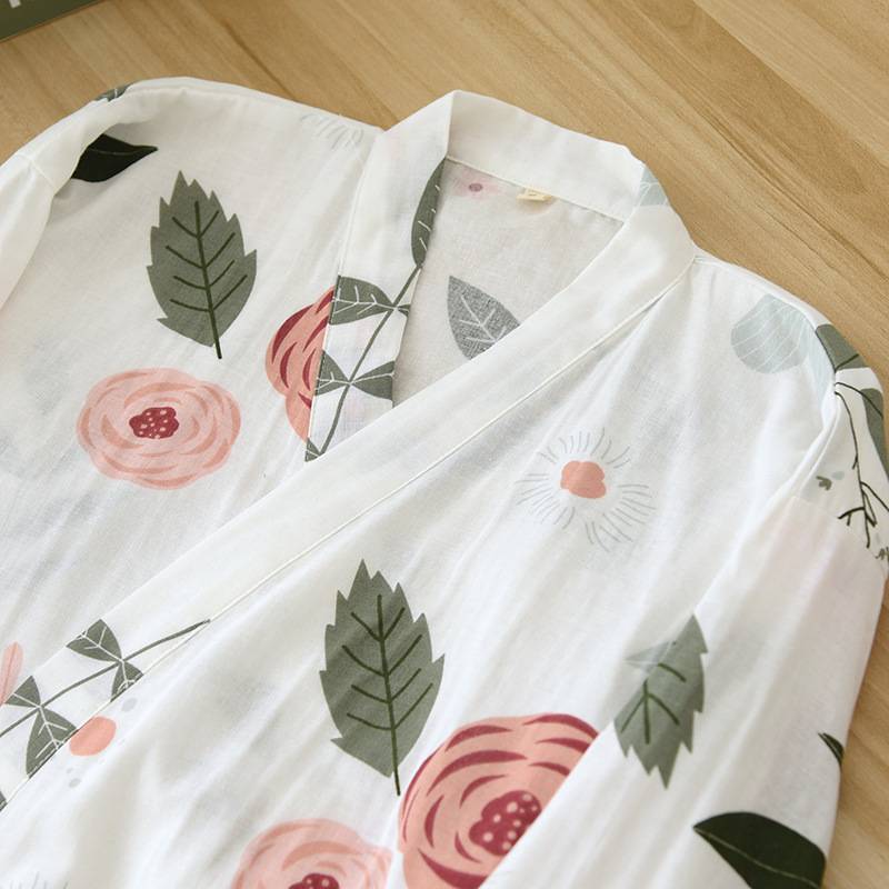 ثوب نوم كيمونو ياباني للسيدات للربيع والصيف رداء حمام نسائي 100% قطن حبل نوم أنيق زهور خدمة منزلية