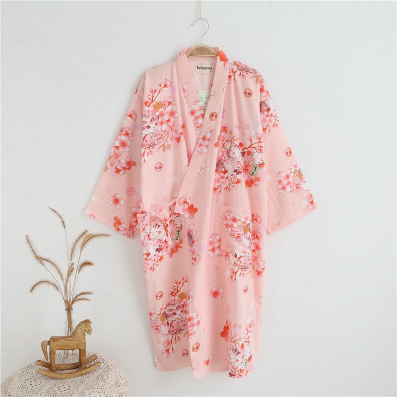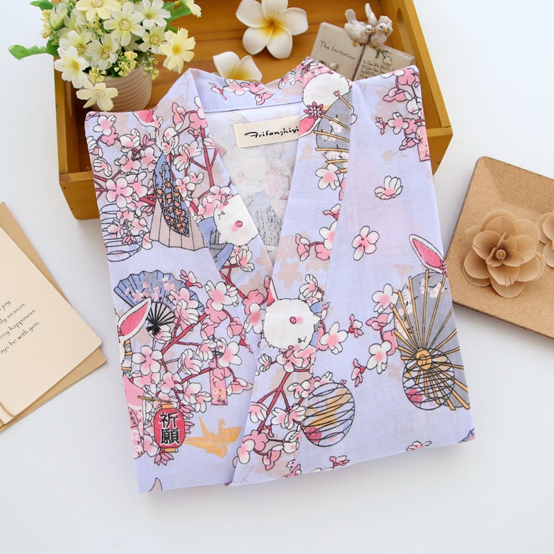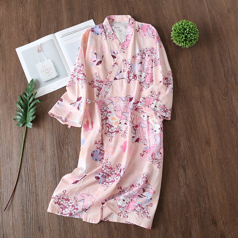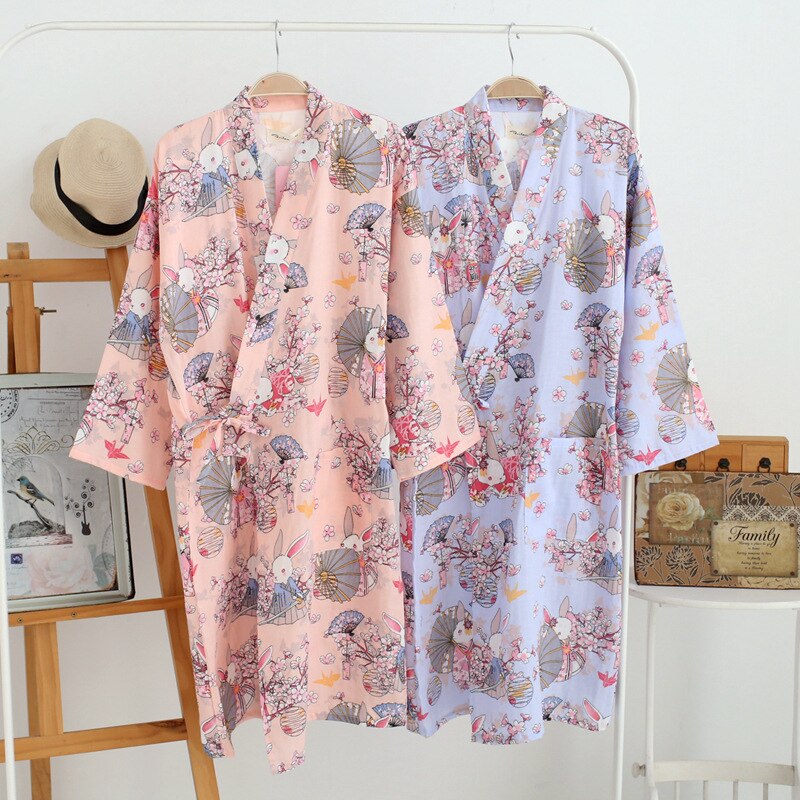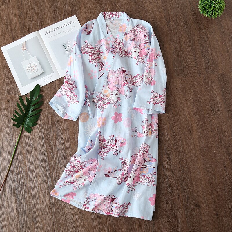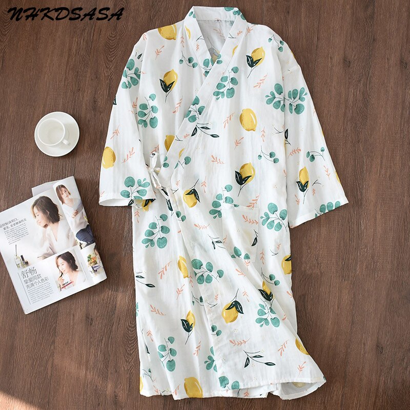 بيجامة كيمونو على الطراز الياباني صيفي جديد 100% بيجامة من الشاش القطني ثوب نوم للسيدات سبا يوكاتا ملابس منزلية بيجامة طويلة للسيدات