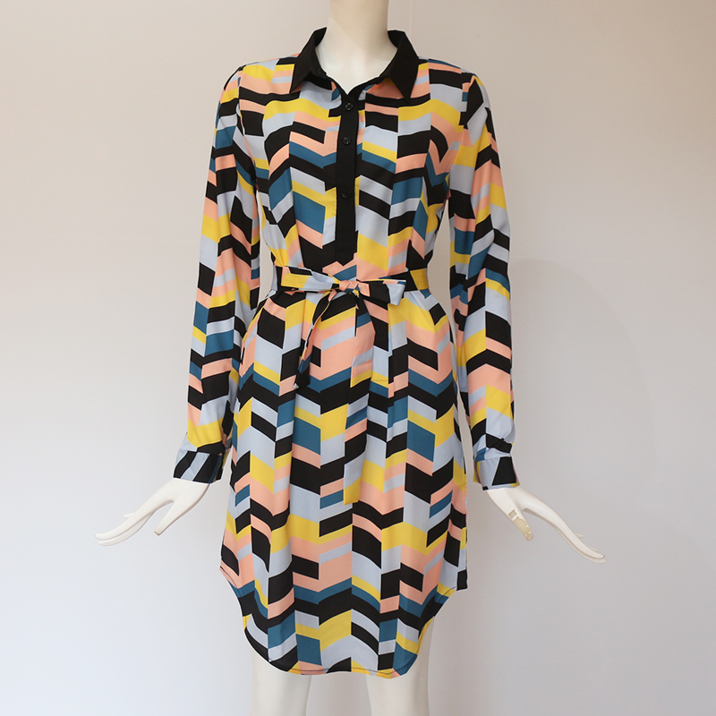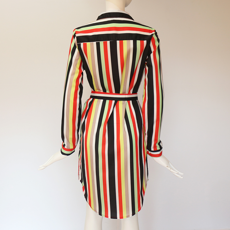 المزايا: طراز كاجوال/فضفاض، فستان قميص طويل الأكمام، ملون/مخطط وخصر عالي مع فساتين صيفية قصيرة مطوية على شكل حرف A