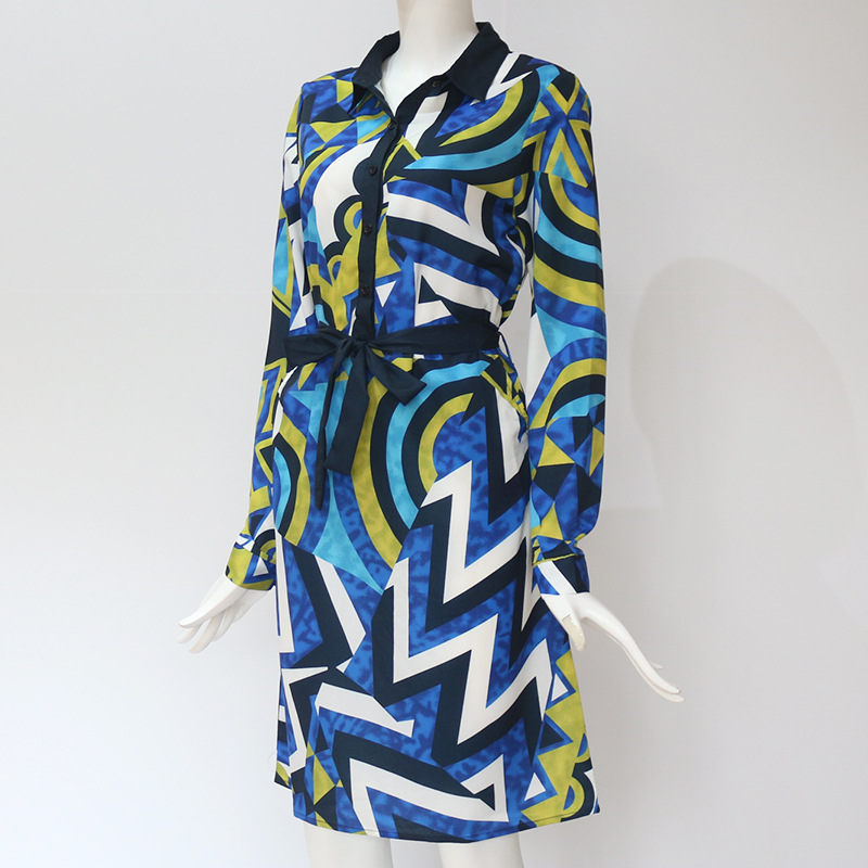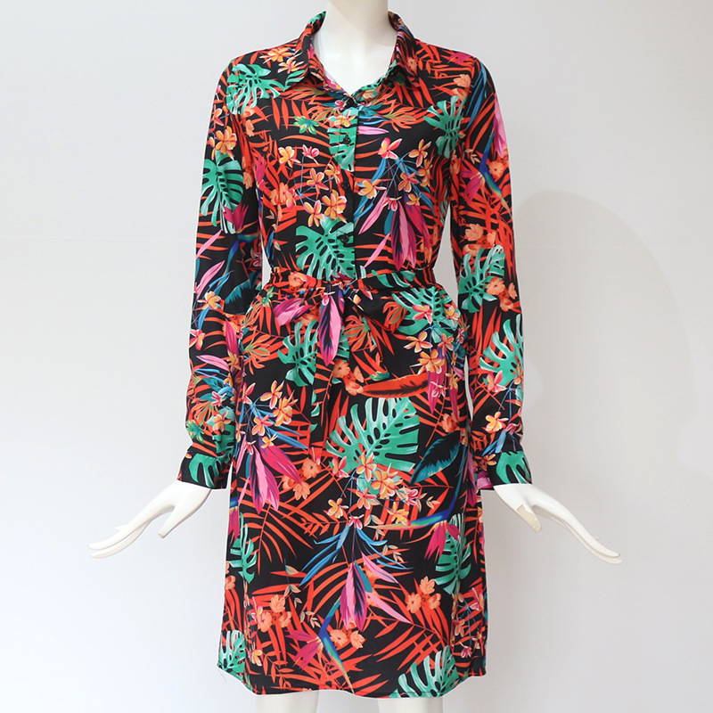 المزايا: طراز كاجوال/فضفاض، فيونكة بأربطة، تنورة قميص طويلة الأكمام، طباعة ملونة وخصر عالي مع فساتين صيفية قصيرة مطوية على شكل حرف A